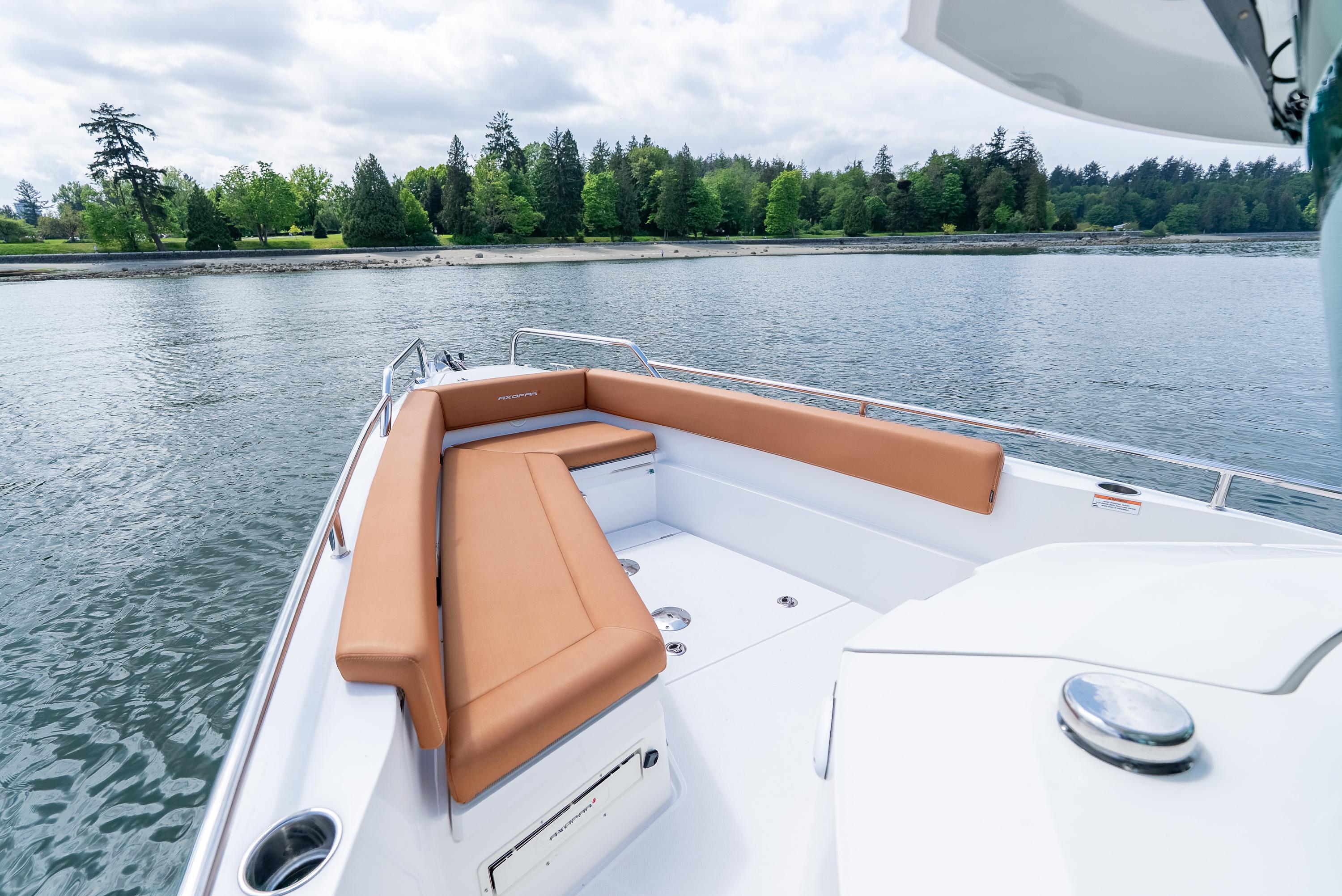 Versatile by design, the walkaround side access and aft-deck is a large flat and practical space that works well for fishing or water-sports activities.