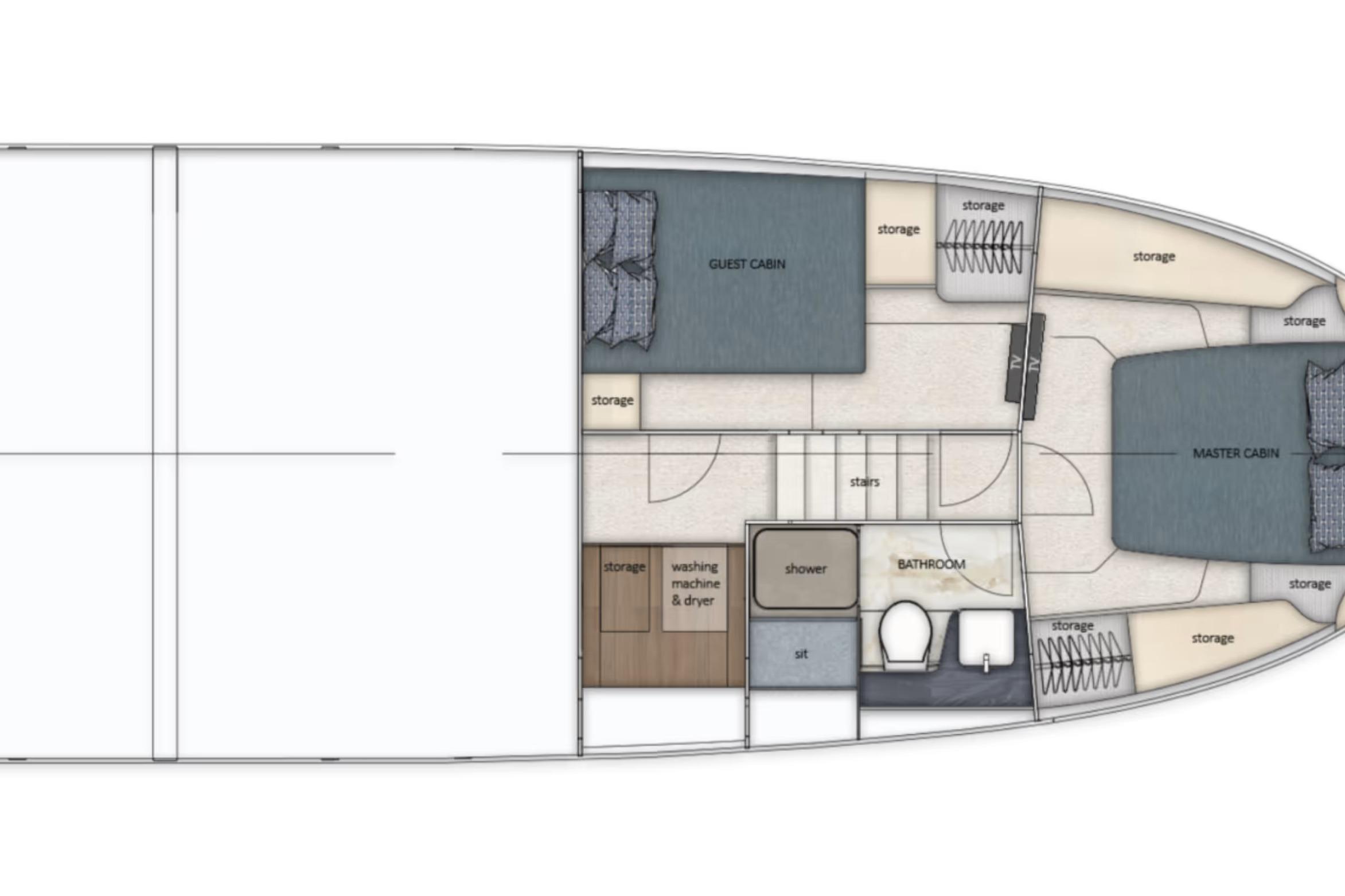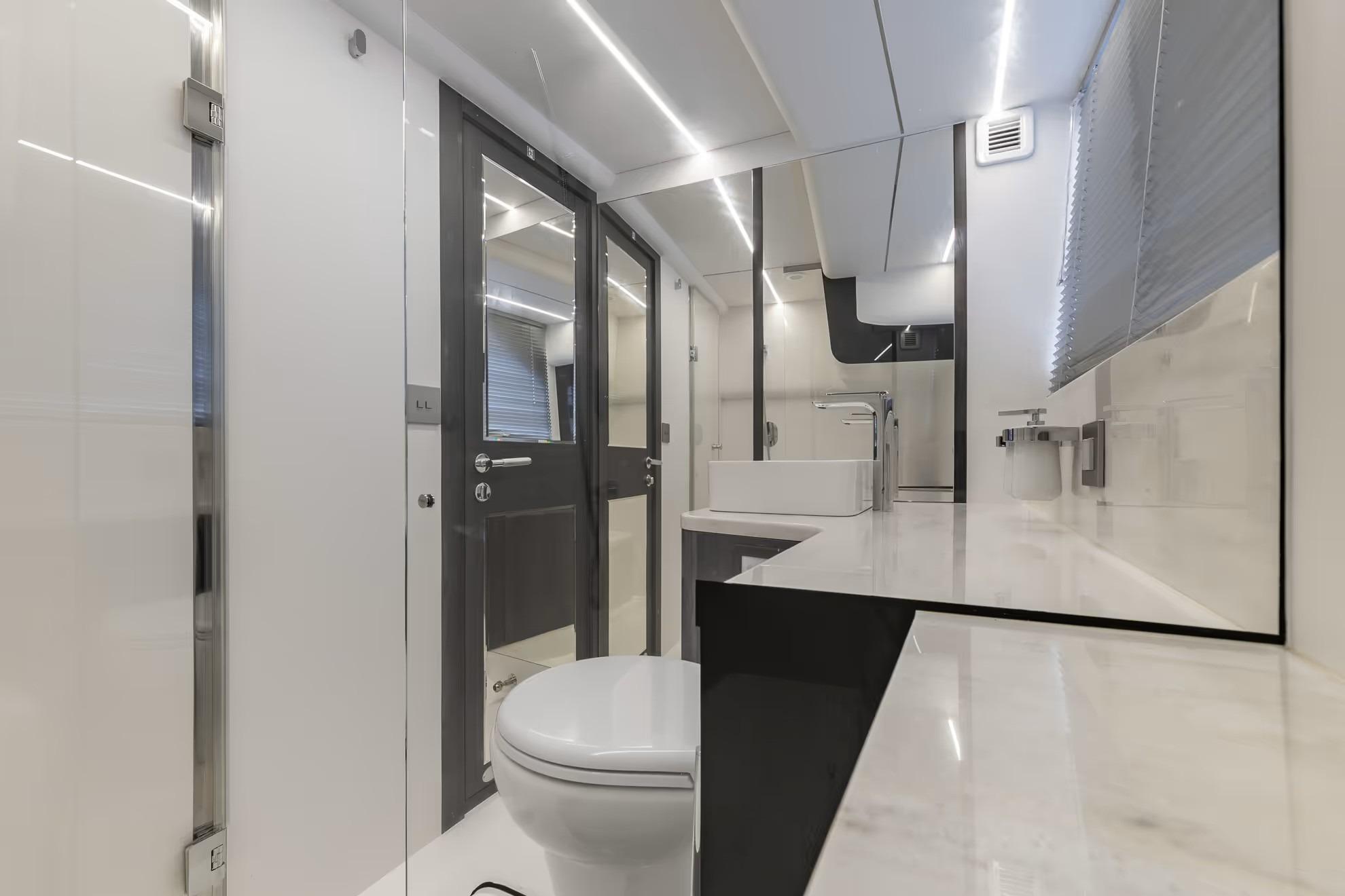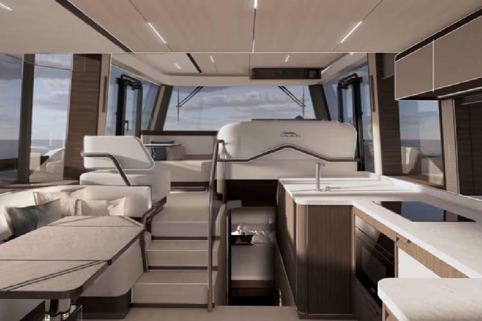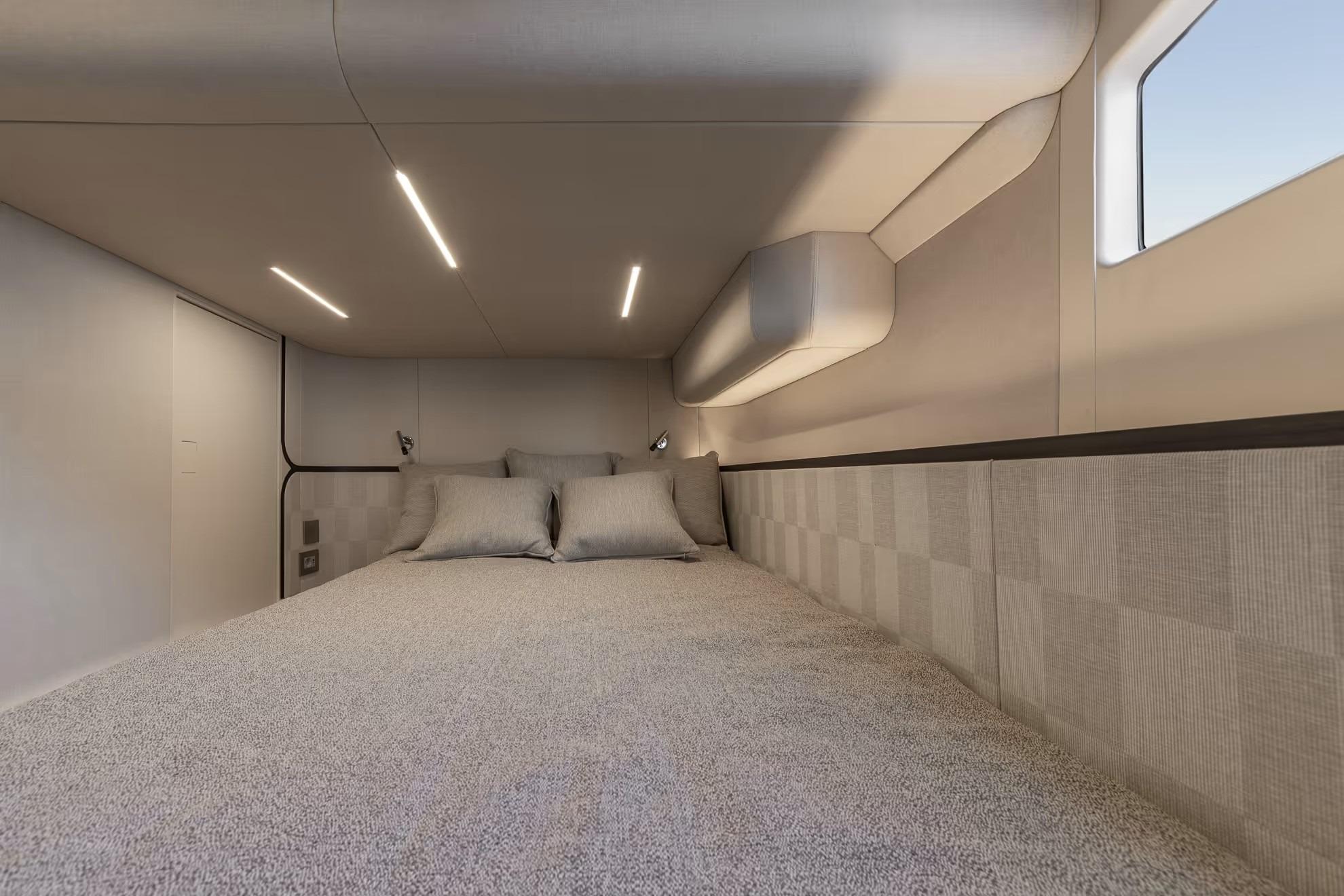 Step inside and you’ll find a thoughtfully designed interior that maximizes space, light, and livability. Large panoramic windows flood the cabin with natural light, while premium finishes and smart layout enhance comfort for extended trips. The main saloon offers generous seating that easily converts to additional sleeping space, a well-equipped galley with ample storage, and a private head compartment — all tailored for cruising in comfort.