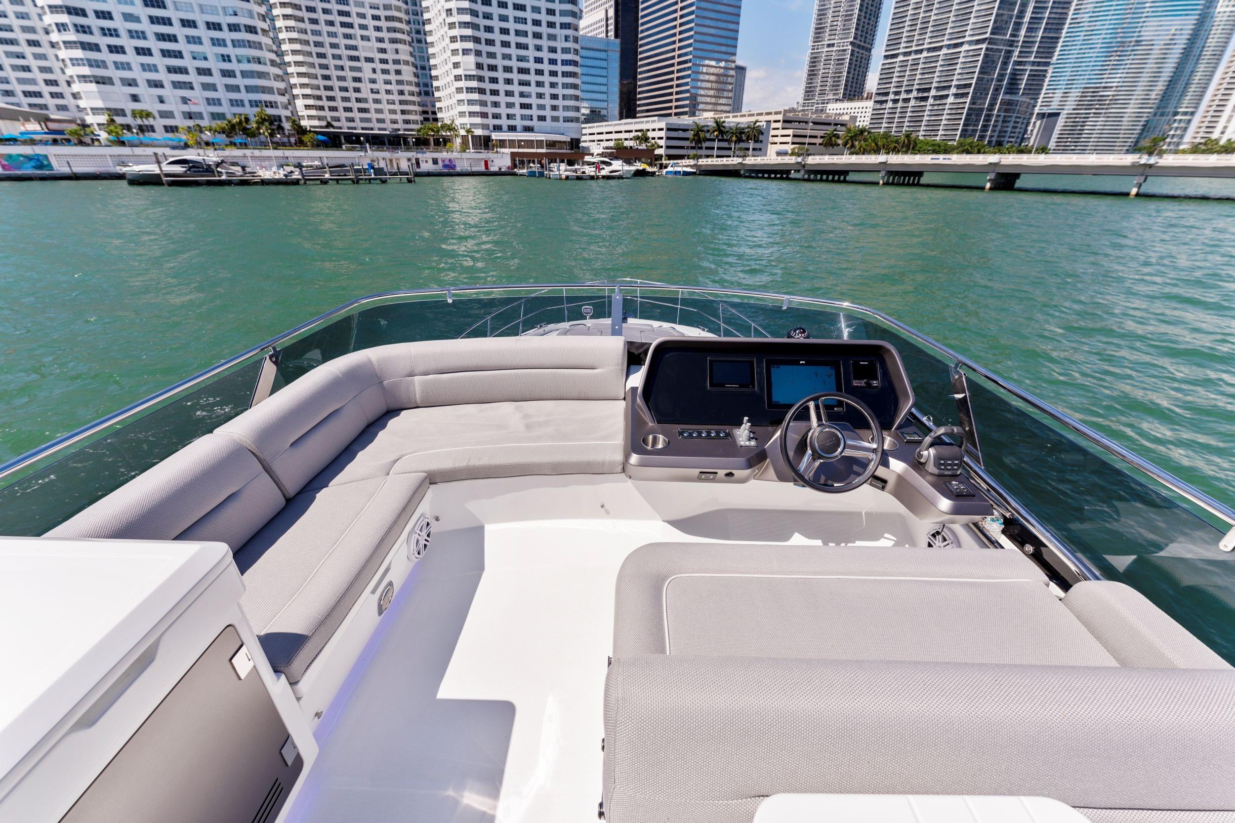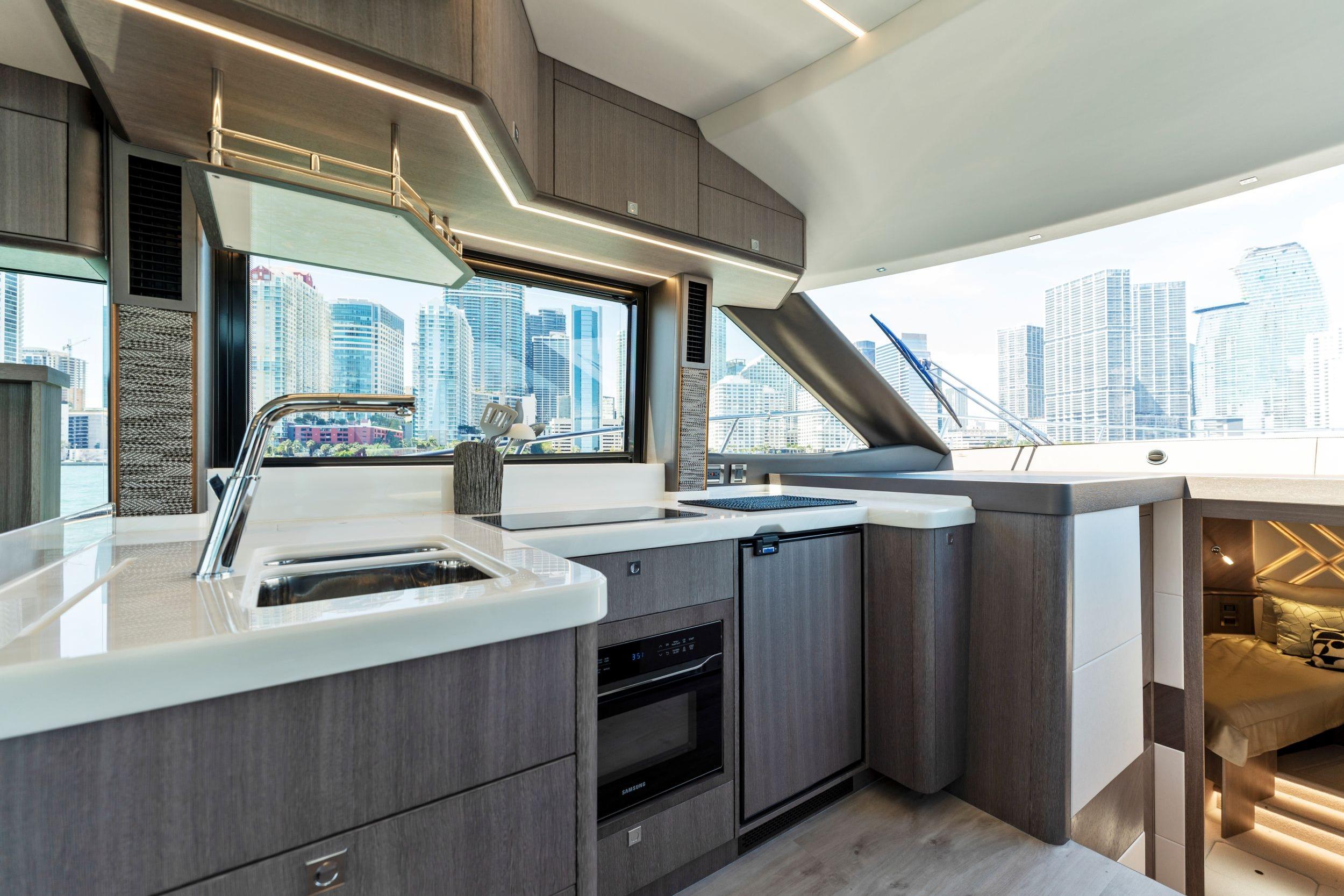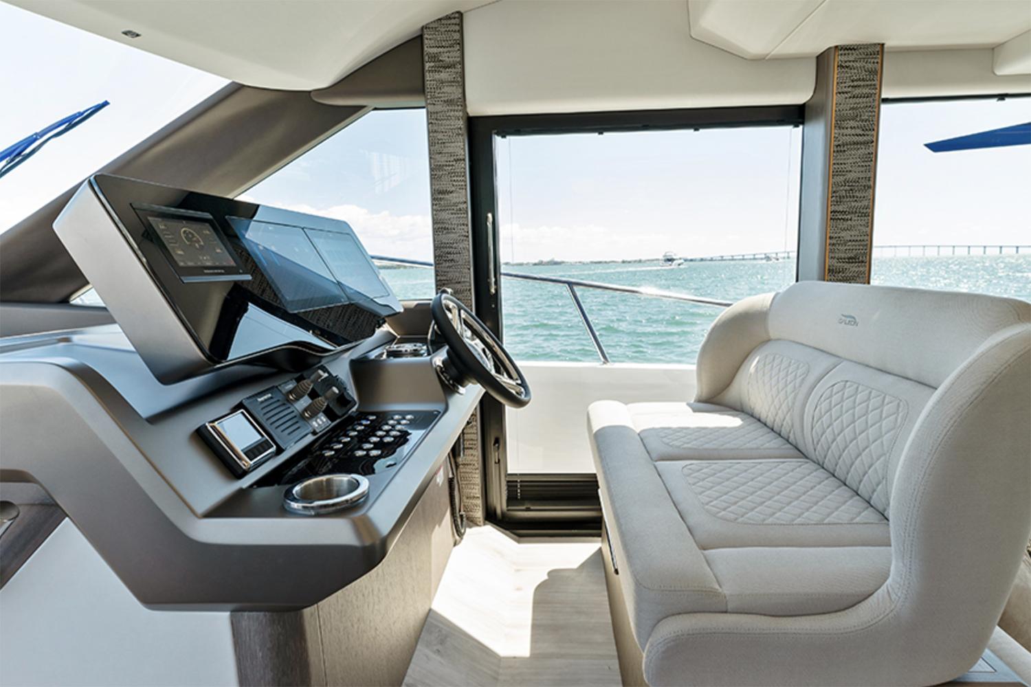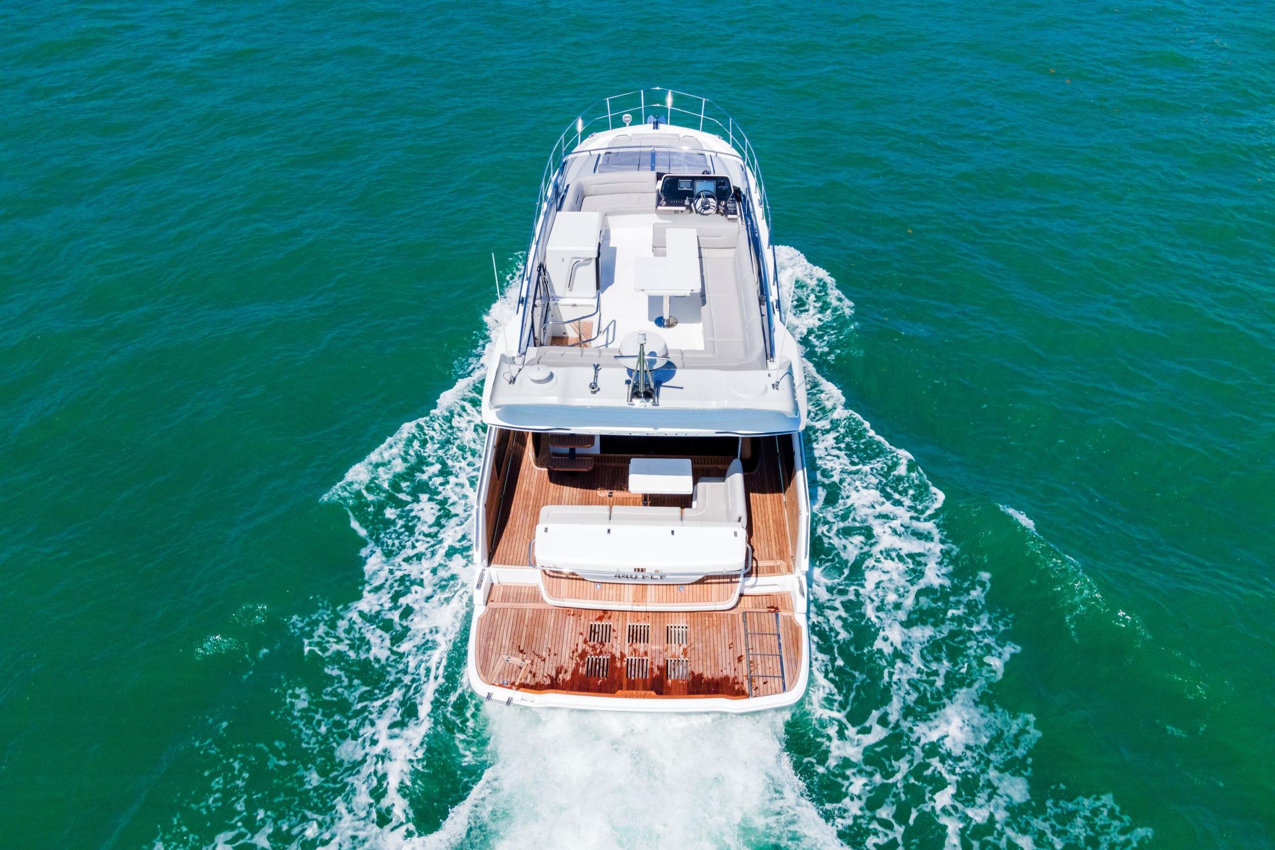 Galeon has leveraged all of its storied boatbuilding experience to create the 440 FLY, a medium-sized motoryacht packed with intelligent innovations and a fresh approach to onboard space distribution. The yacht has a sleek exterior and unmistakable Galeon DNA in regards to this boat’s aesthetic appeal. A dynamic silhouette combines with sporty accents throughout to create a boat that looks like it is moving even when it is standing still. As for exterior and interior living spaces, practicality and versatility were of utmost importance during the design phase of this model. The Galeon 440 FLY can be configured for either two or three cabin layout and comes available with a variety of luxury finishes and a comprehensive list of additional features that allow for maximum customization.