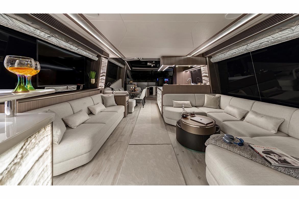 The Galeon 800 FLY is the culmination of world-famous and award-winning naval architect Tony Castro’s brilliant design and Galeon’s extensive, fourth-generation yacht manufacturing experience. The far-reaching knowledge, comprehensive talents, and extensive experience has achieved near perfection in creating the 800 FLY, combining a sporty profile while delivering impressive performance with a perception of space and opulence previously reserved only for mega-yachts. The 800 FLY offers best-in-class luxury and comfort, paired with the latest technology, safety, performance, and seaworthiness upon which Galeon has built its reputation.