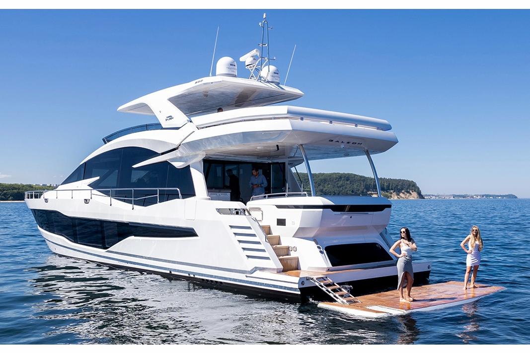 Thanks to many years of experience, passed down in our company from generation to generation, we have created the Galeon 800 FLY, which combines a sporty silhouette and impressive performance with a sense of space and luxury previously reserved only for megayachts. The subtle design that is noticeable at first glance, expressed in soft lines and rounded structural elements, we owe to unparalleled design masters from Tony Castro. Moreover, advanced navigation electronics and the latest technologies used on this fourth generation yacht ensure the safety and comfort of all passengers.