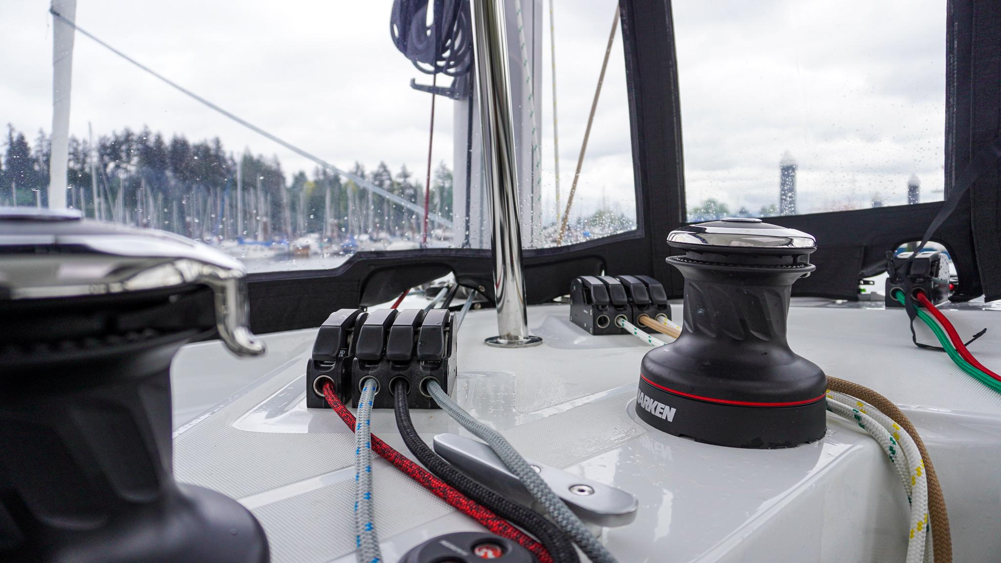 The mast moved further aft and the self-tacking jib, a guarantee of performance under sail and ease of handling, provide the ability to bring all operations together in one place.