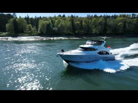 The 580 Meridian offers a compelling blend of modern styling, rich accommodations and attractive price. Her wide-beam salon with built-in dinette and form fitting couches can seat a small crowd in comfort. Wrap around windows provide guests with panoramic views. Visibility from raised pilothouse is excellent. Her full-beam owner's suite includes mirrored vanity, and a generous sized shower enclosure. Topside features include flybridge, foredeck sun pad, cockpit engine room access & extended swim platform. Low hour Cummins 635hp diesels will cruise her at 18 knots.