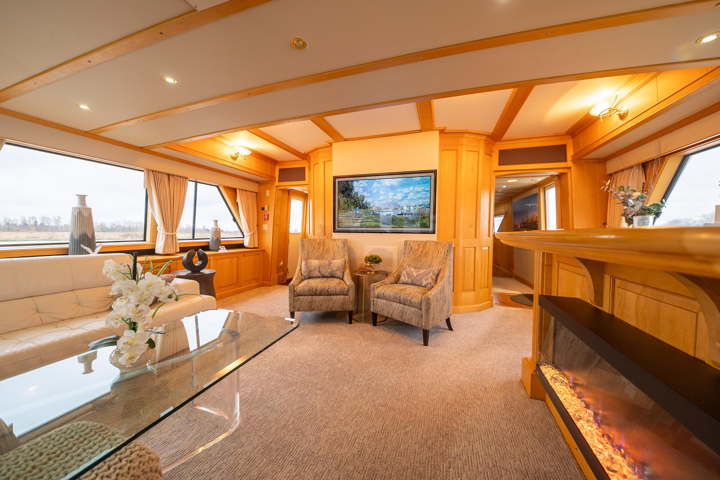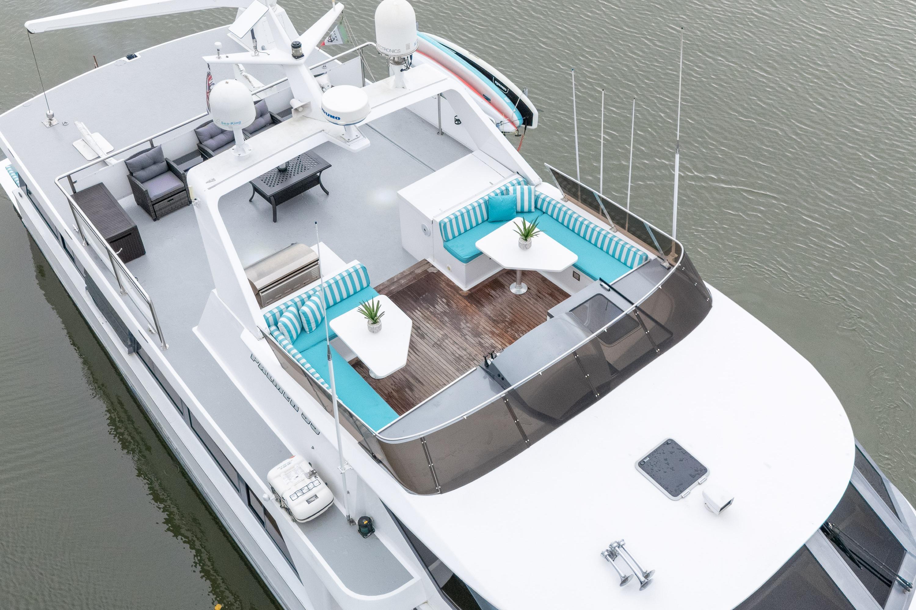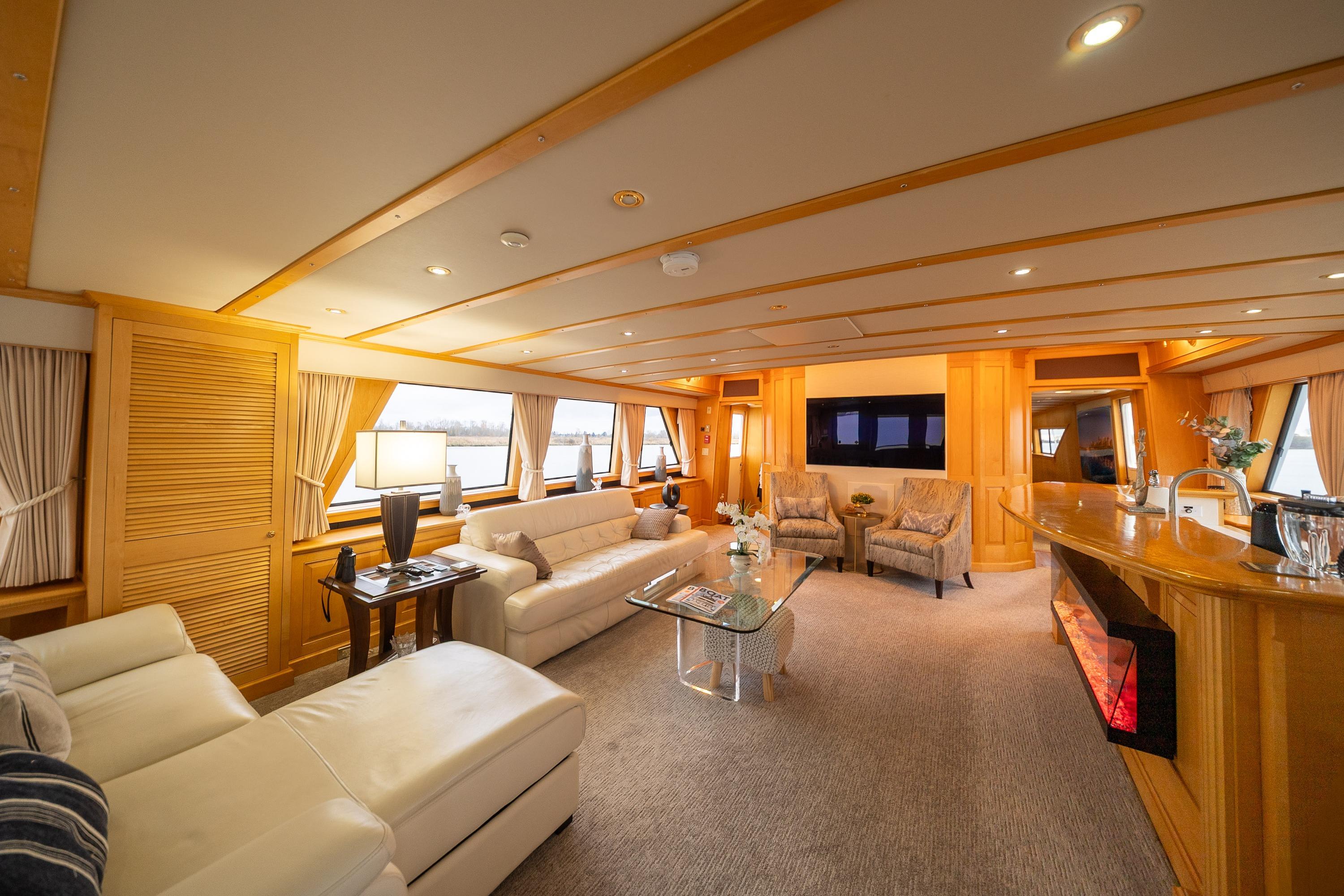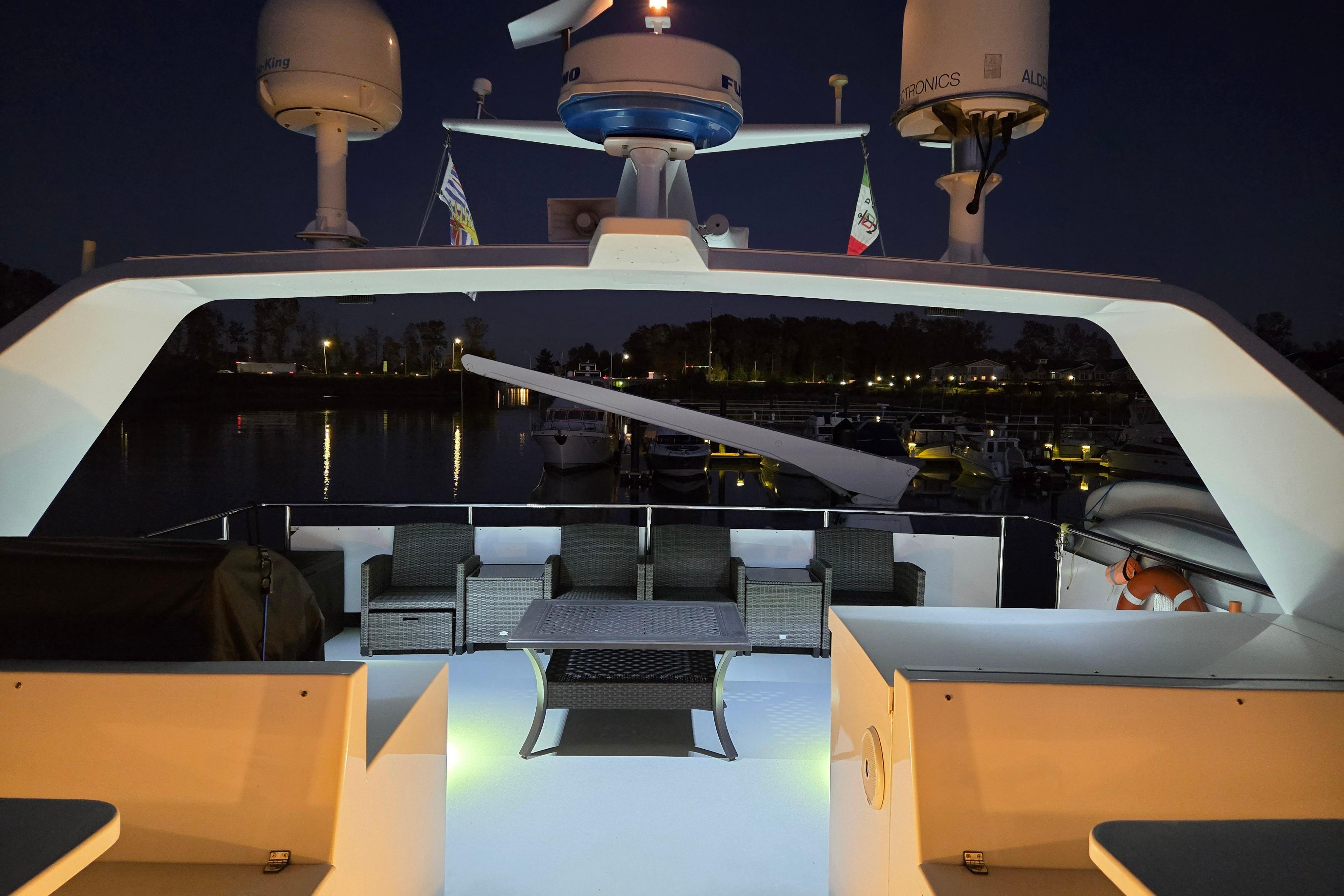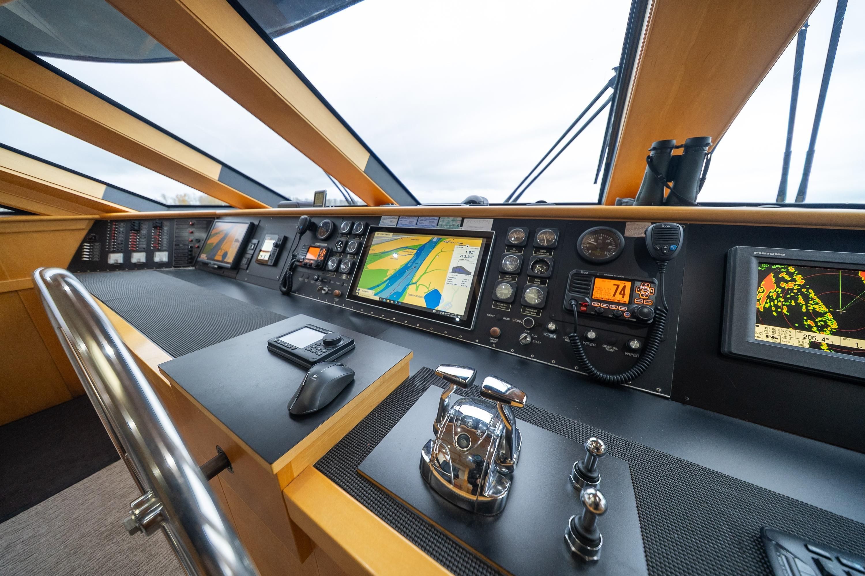 - Control - Powerful Hydraulic Bow and Stern Thrusters, combined with the electronic controls directing twin 5 Blade 40" diameter propellers provide great control when maneuvering.