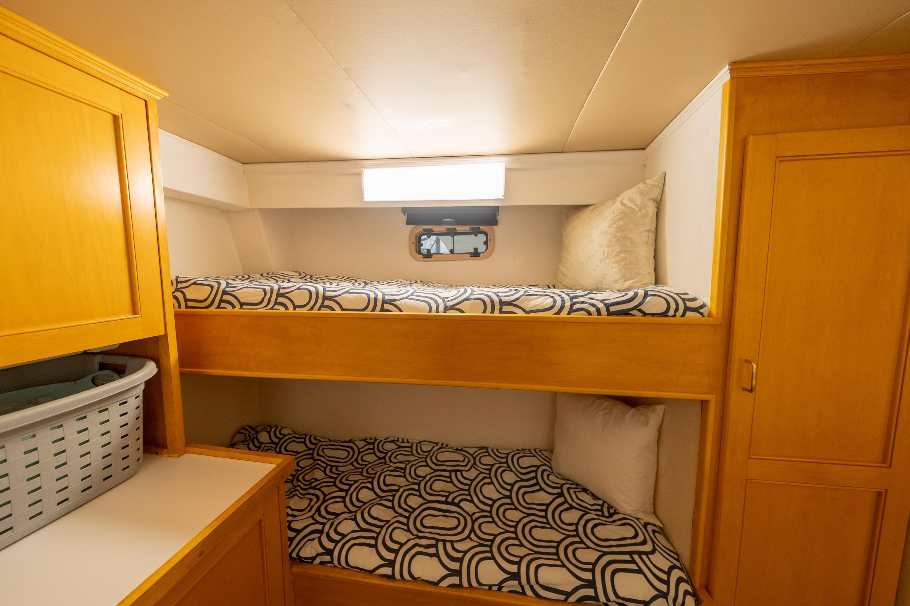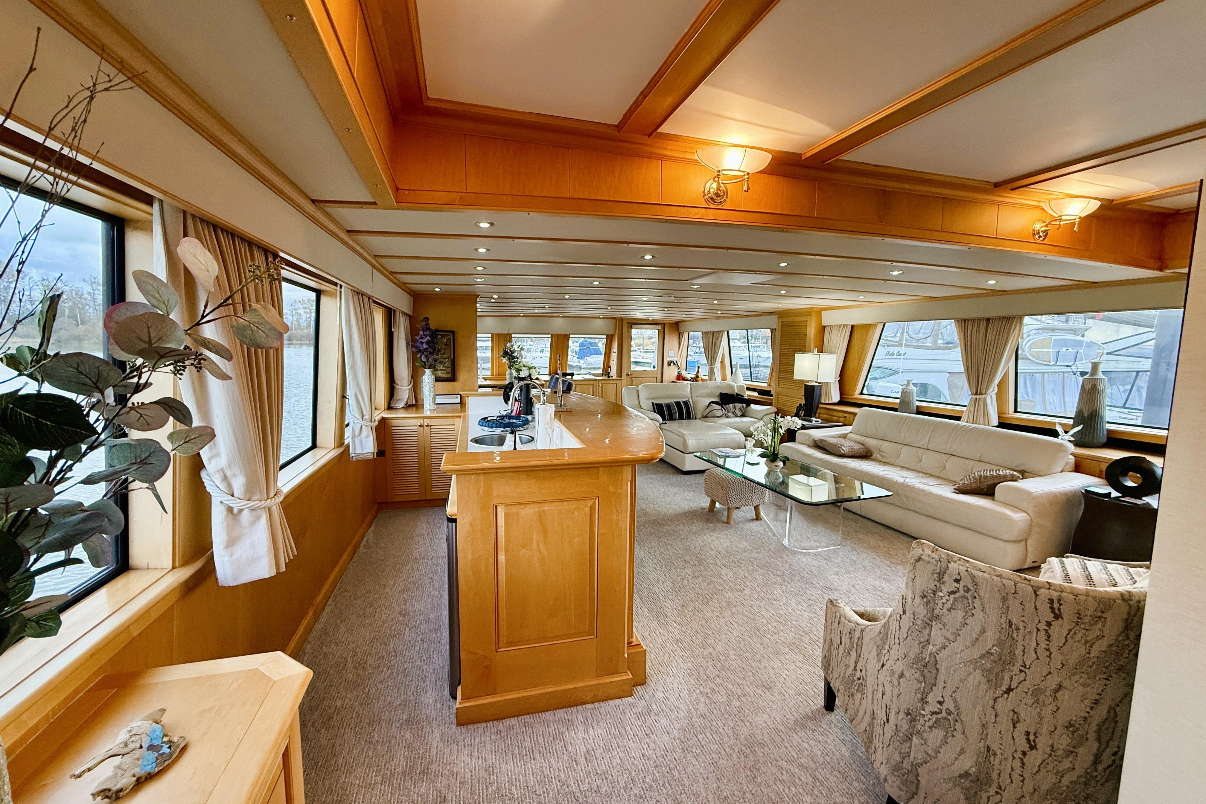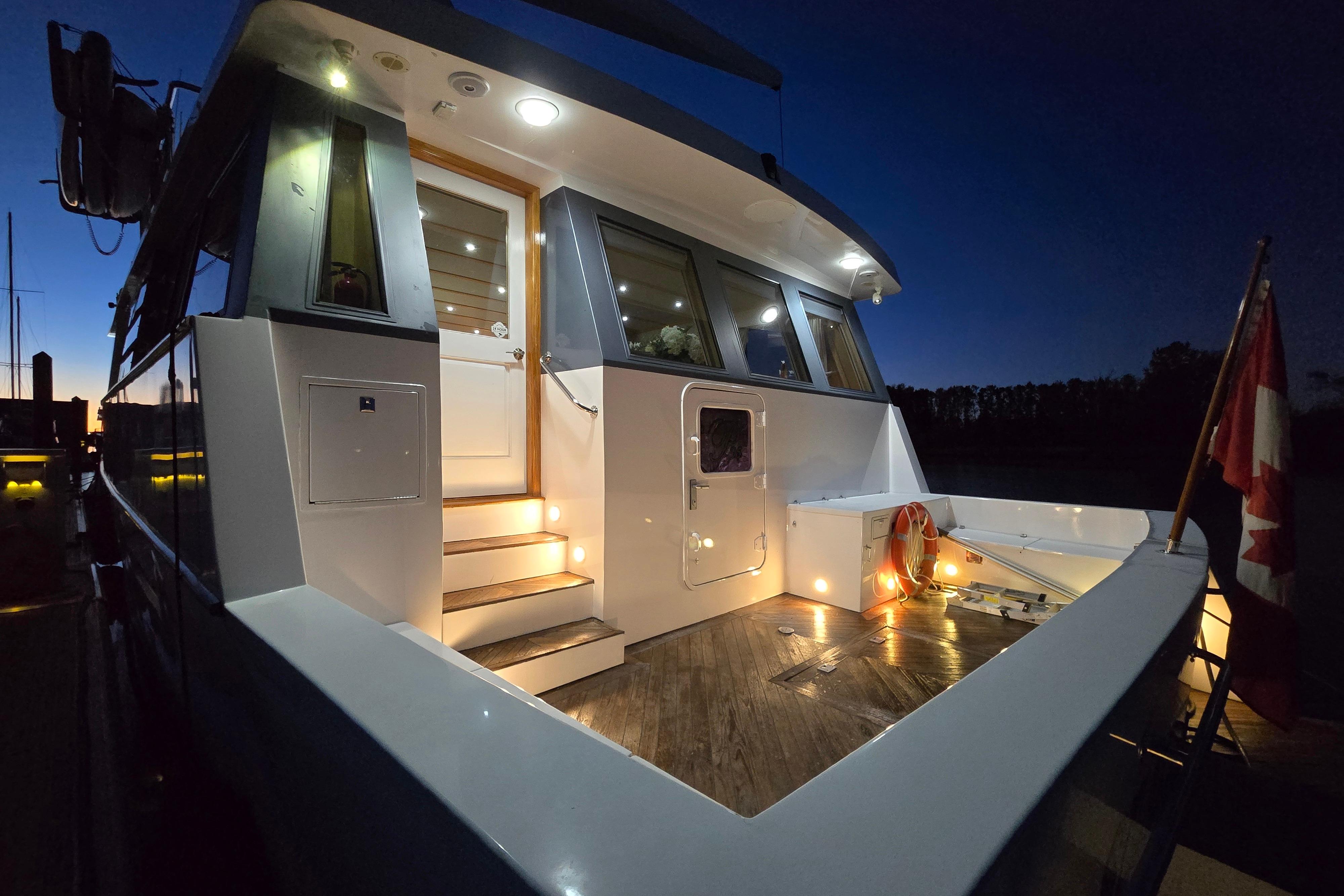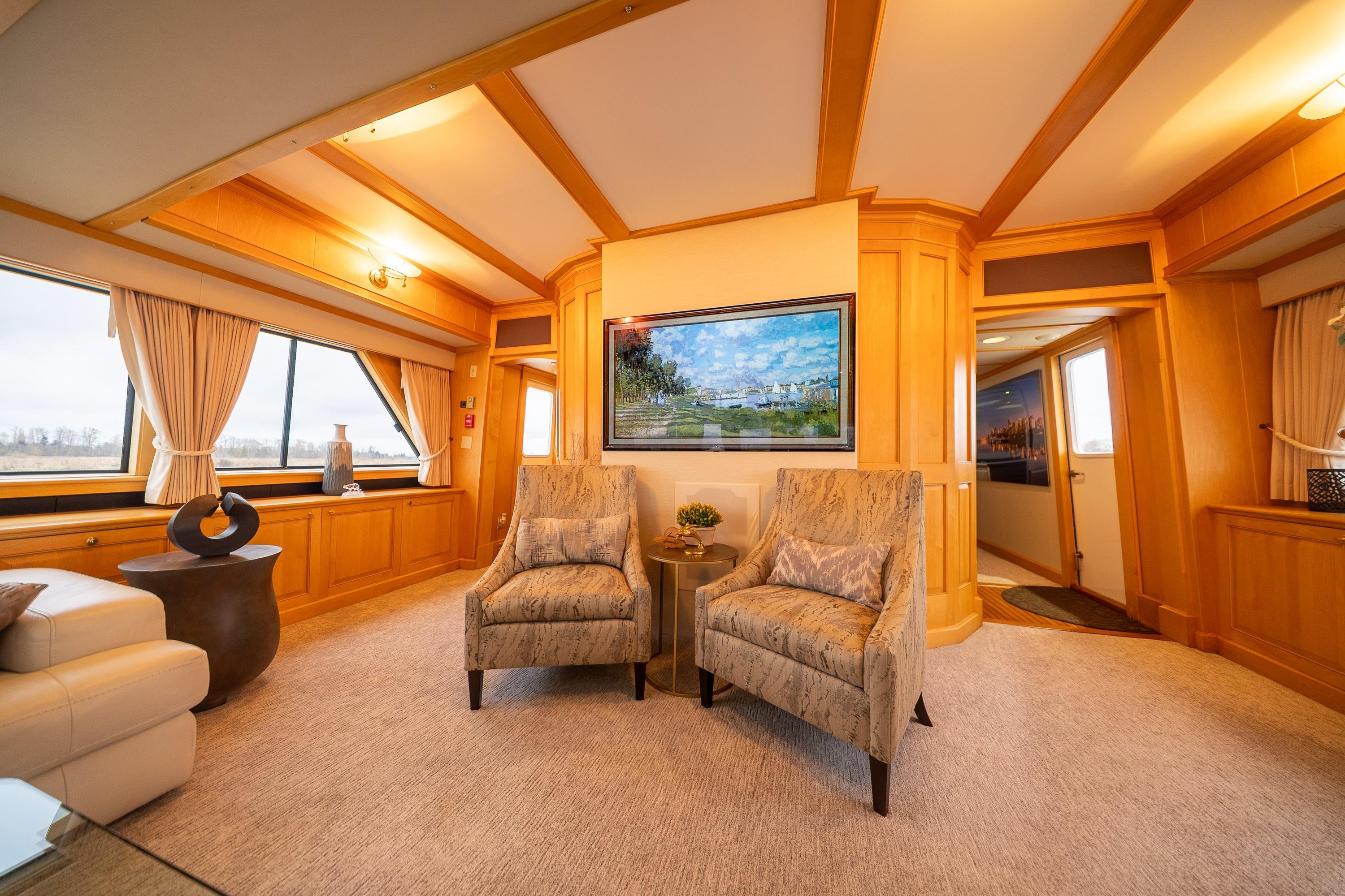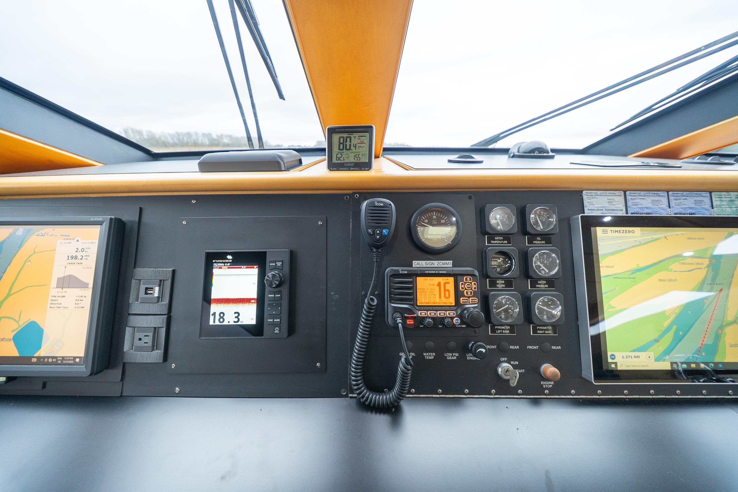 - Control - Powerful Hydraulic Bow and Stern Thrusters, combined with the electronic controls directing twin 5 Blade 40" diameter propellers provide great control when maneuvering.