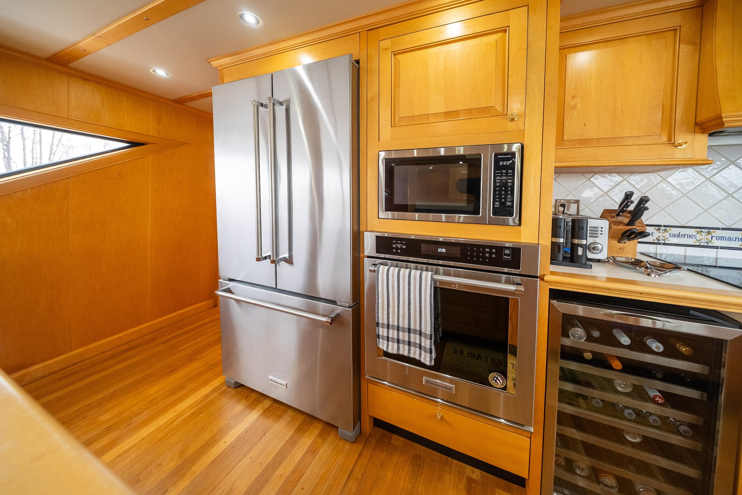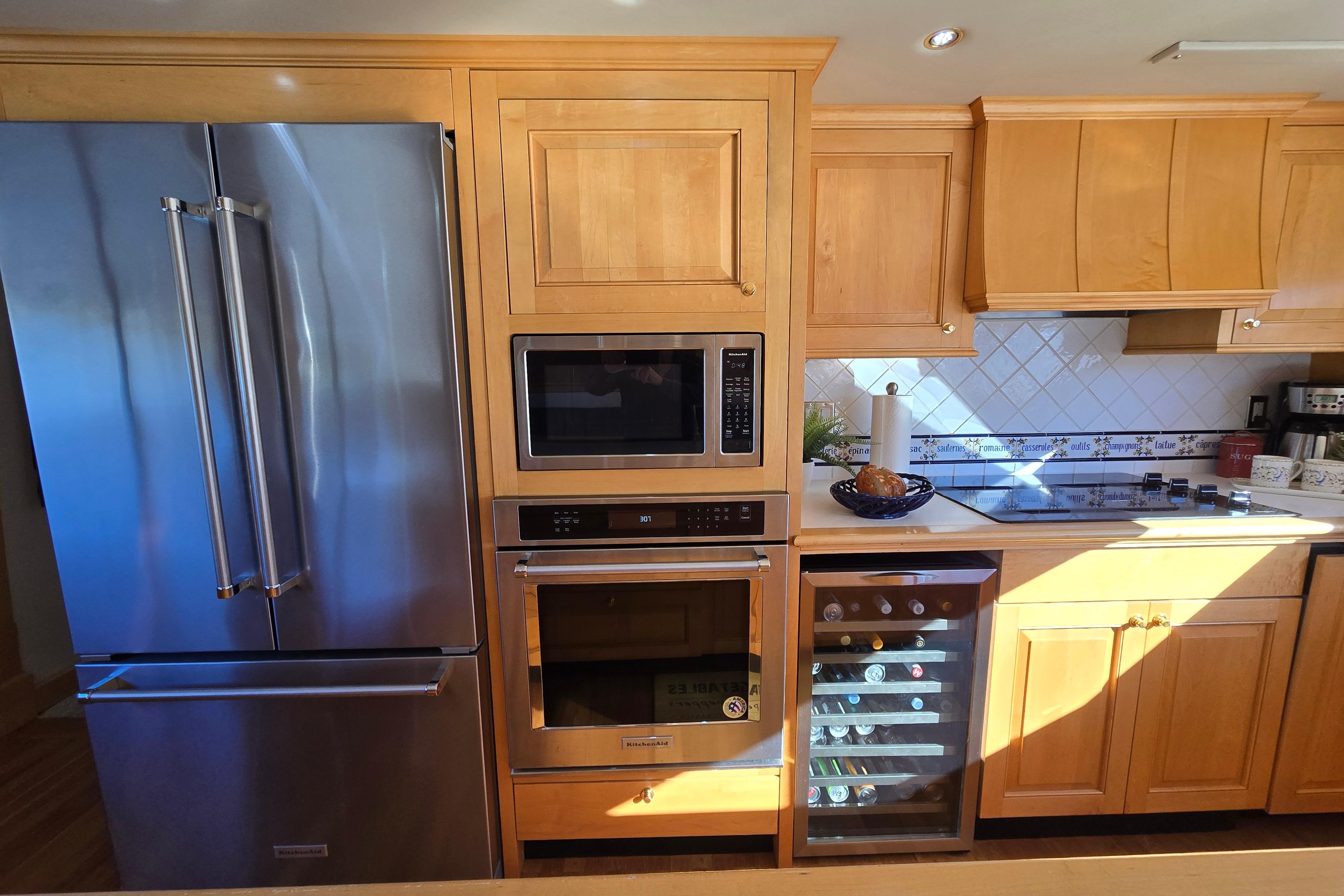 - Professional galley with stainless KitchenAid appliances, Bosch dishwasher, and 10' dining table for 8