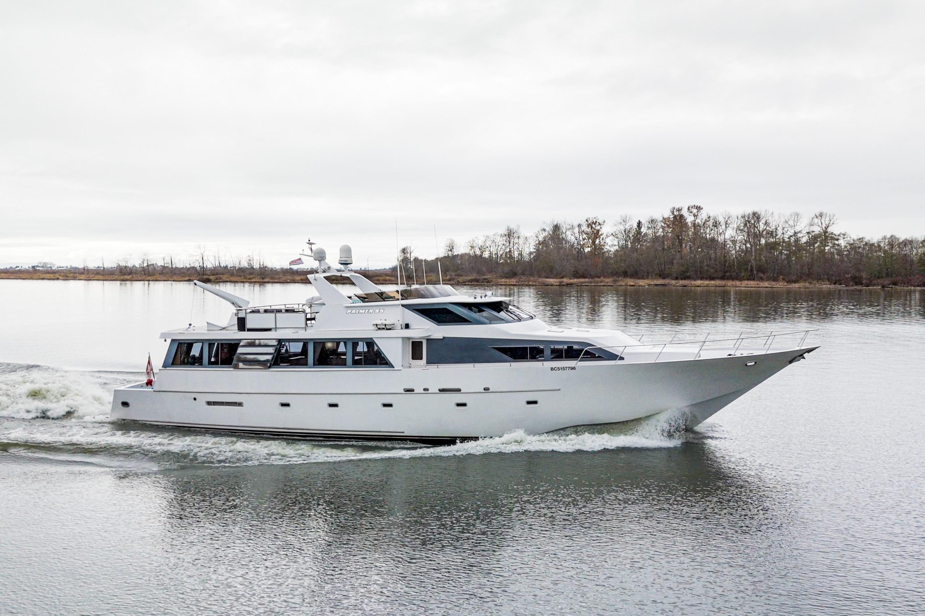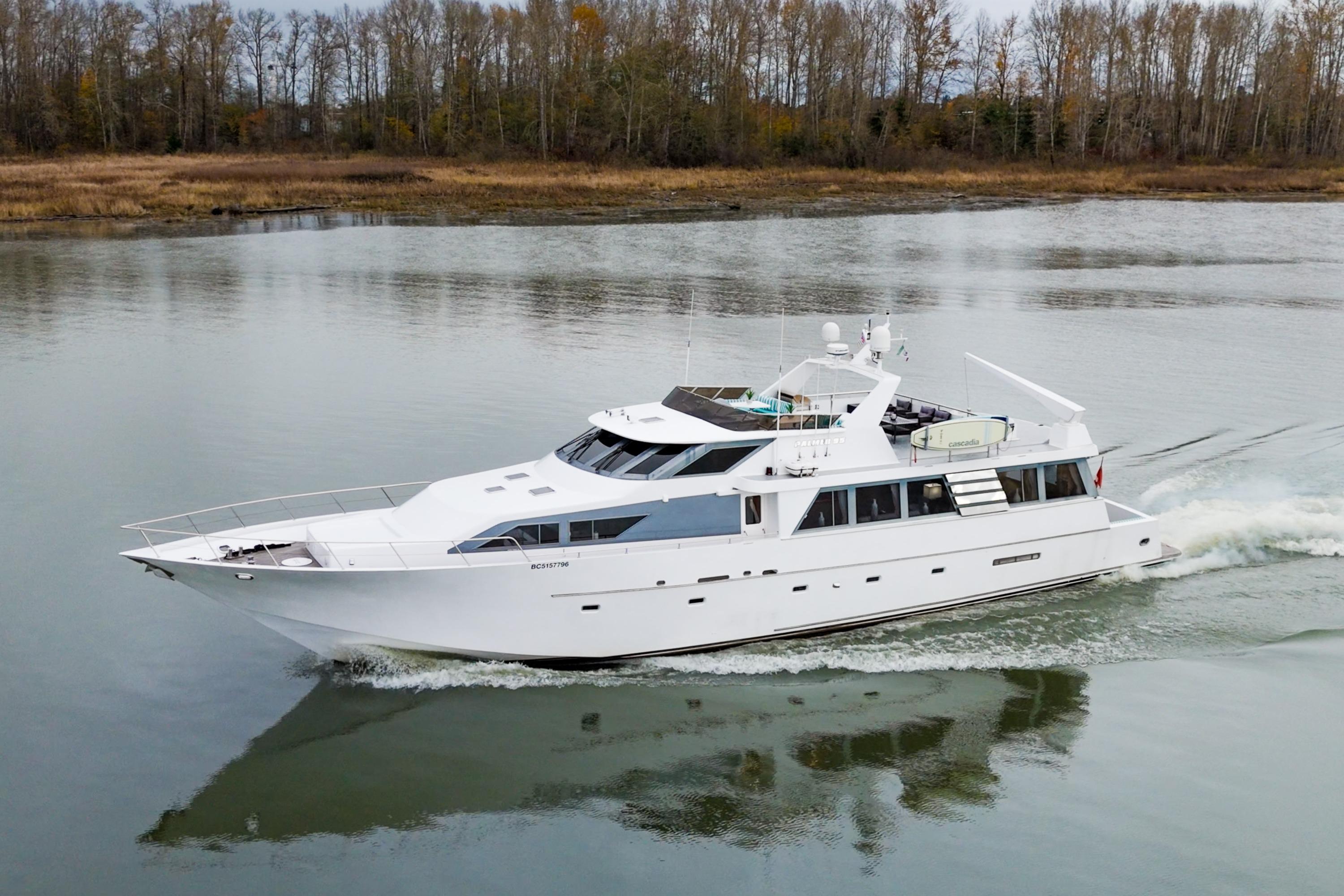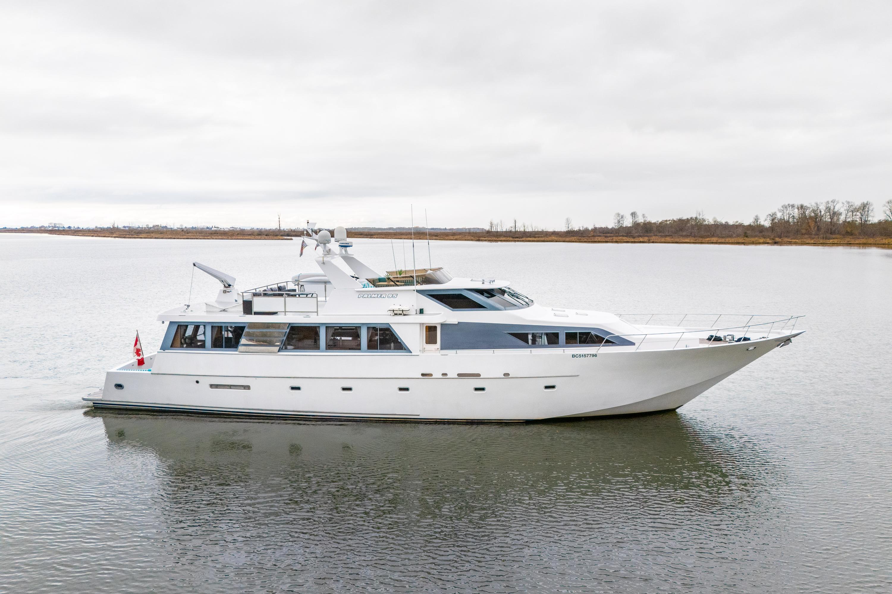 Seacret Spirit – a 95' Palmer Marine, Jack Sarin-designed fiberglass motor yacht built in Richmond, BC. in 1989 and fully refitted in 2000. This vessel blends classic style, a practical design, and incredible comfort. Warm, bright, and welcoming throughout, the maple-paneled interiors illuminate with natural light from 14 large salon windows and galley ports. Cruising effortlessly and efficiently at 10–12 knots due to twin 820 hp MAN V10 diesels (2000). This pilothouse classic accommodates up to 12 guests, there are 3 large staterooms (including a full-beam master with jacuzzi tub) plus two separate crew cabins.