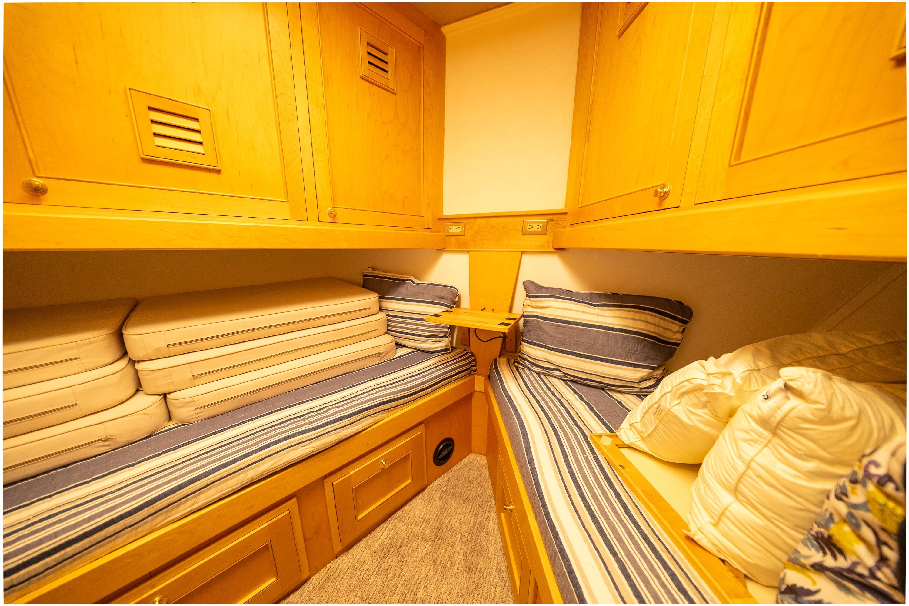 - Comfort Underway - A modest beam, long waterline, and Naiad stabilizers ensure a comfortable stable motion underway.