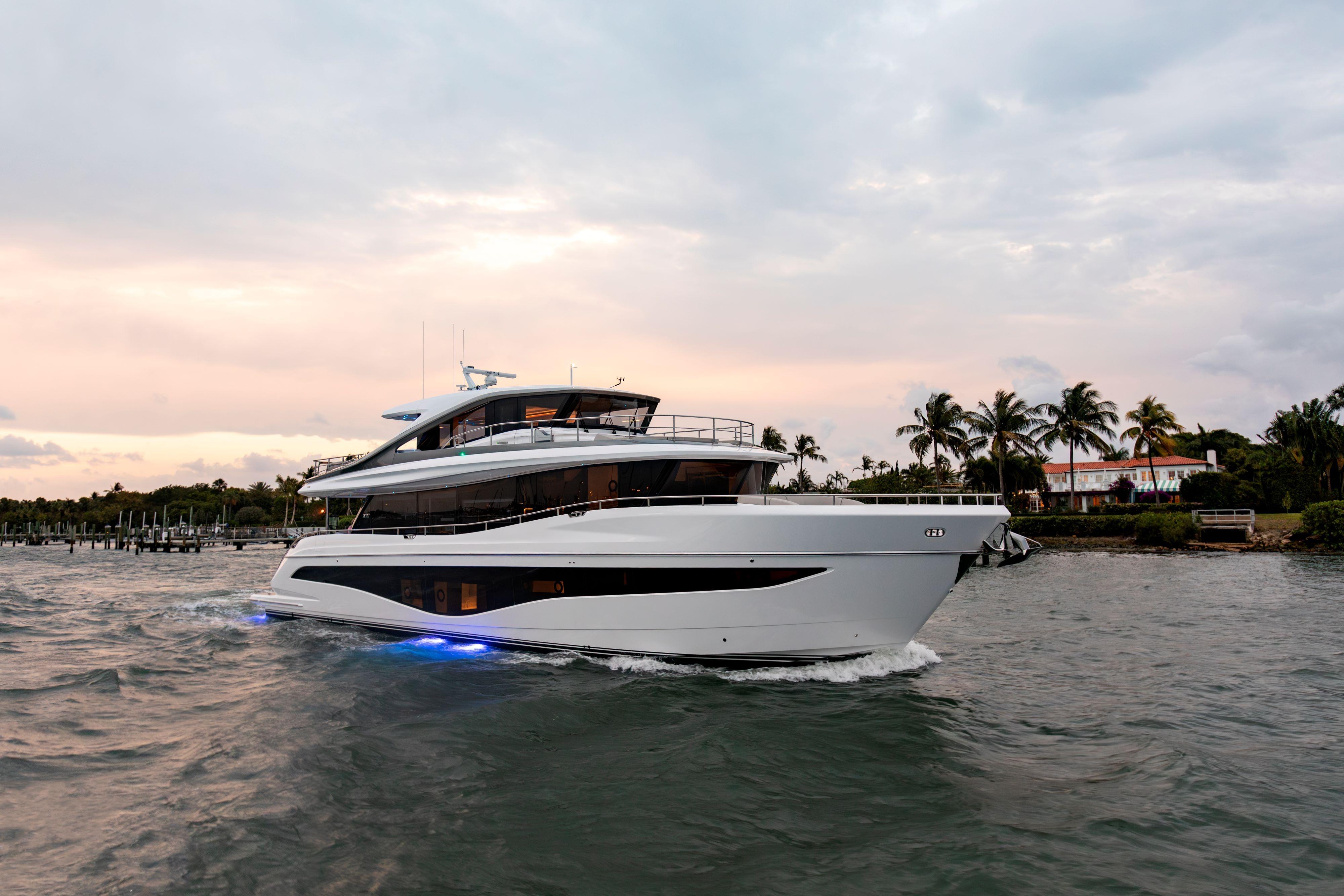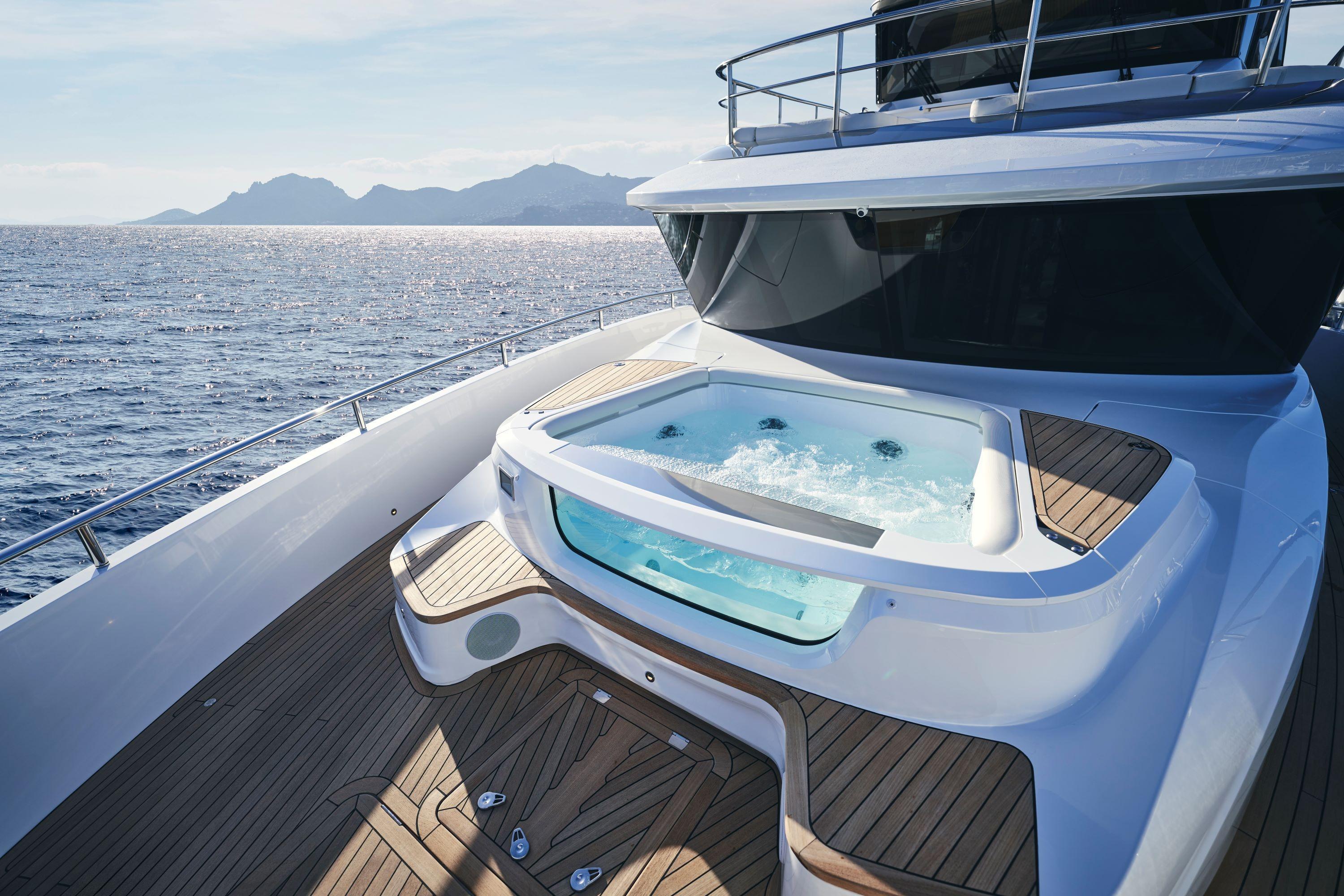 The beautifully sculpted surfaces and long flowing design lines of the X95 are carried through into her sister ship, the X80. The all-new X80 becomes the second member of the X Class ‘Superfly’ family. She has a ‘super flybridge’ providing in excess of 30% more useful interior space onboard than a traditional flybridge yacht of its length.