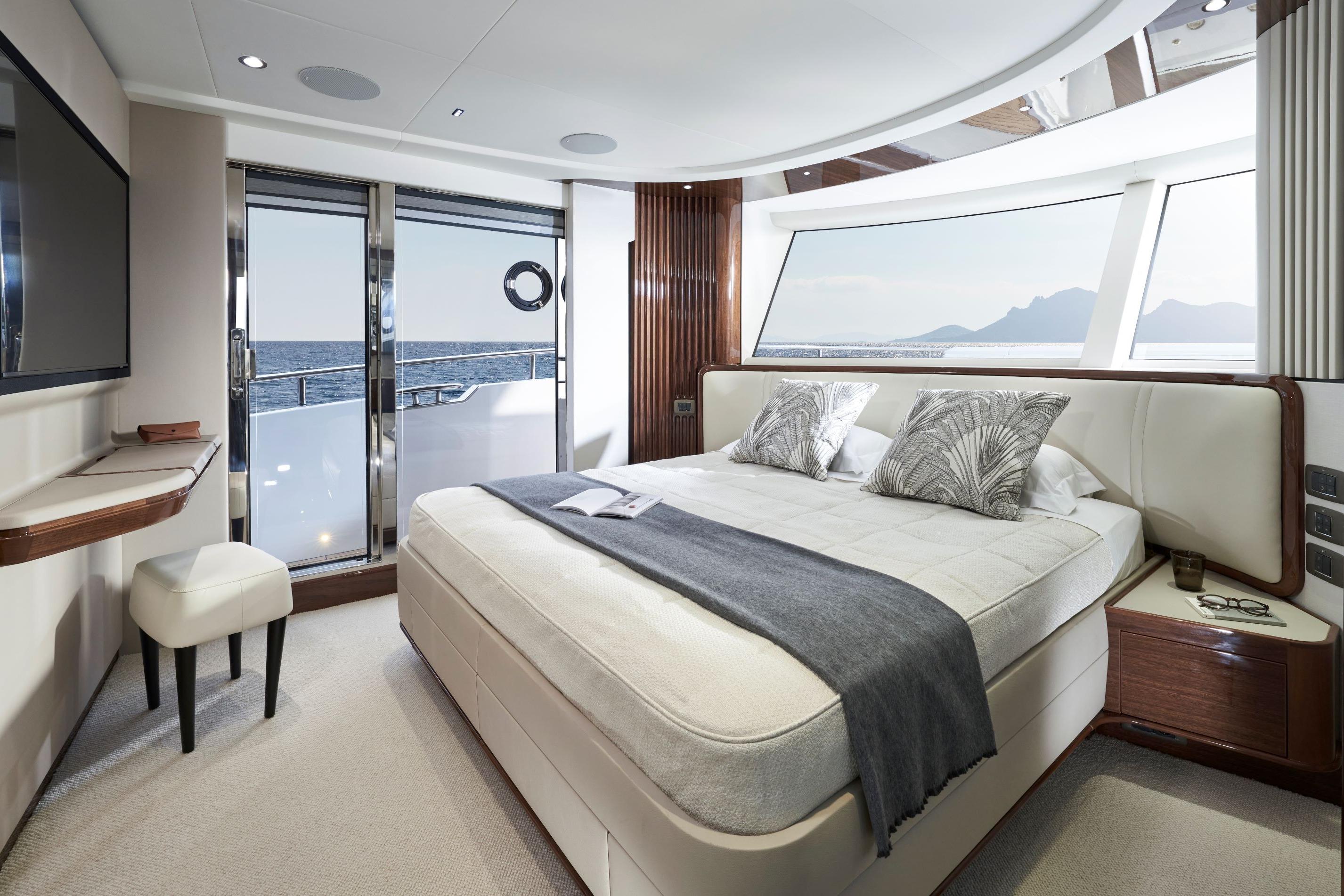 - Hinged door to port side of main deck dinette/ optional main deck master stateroom giving access to side deck/ foredeck with opening porthole As standard this Includes a manual sheer pleated blind