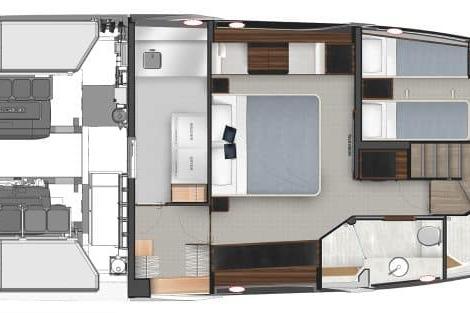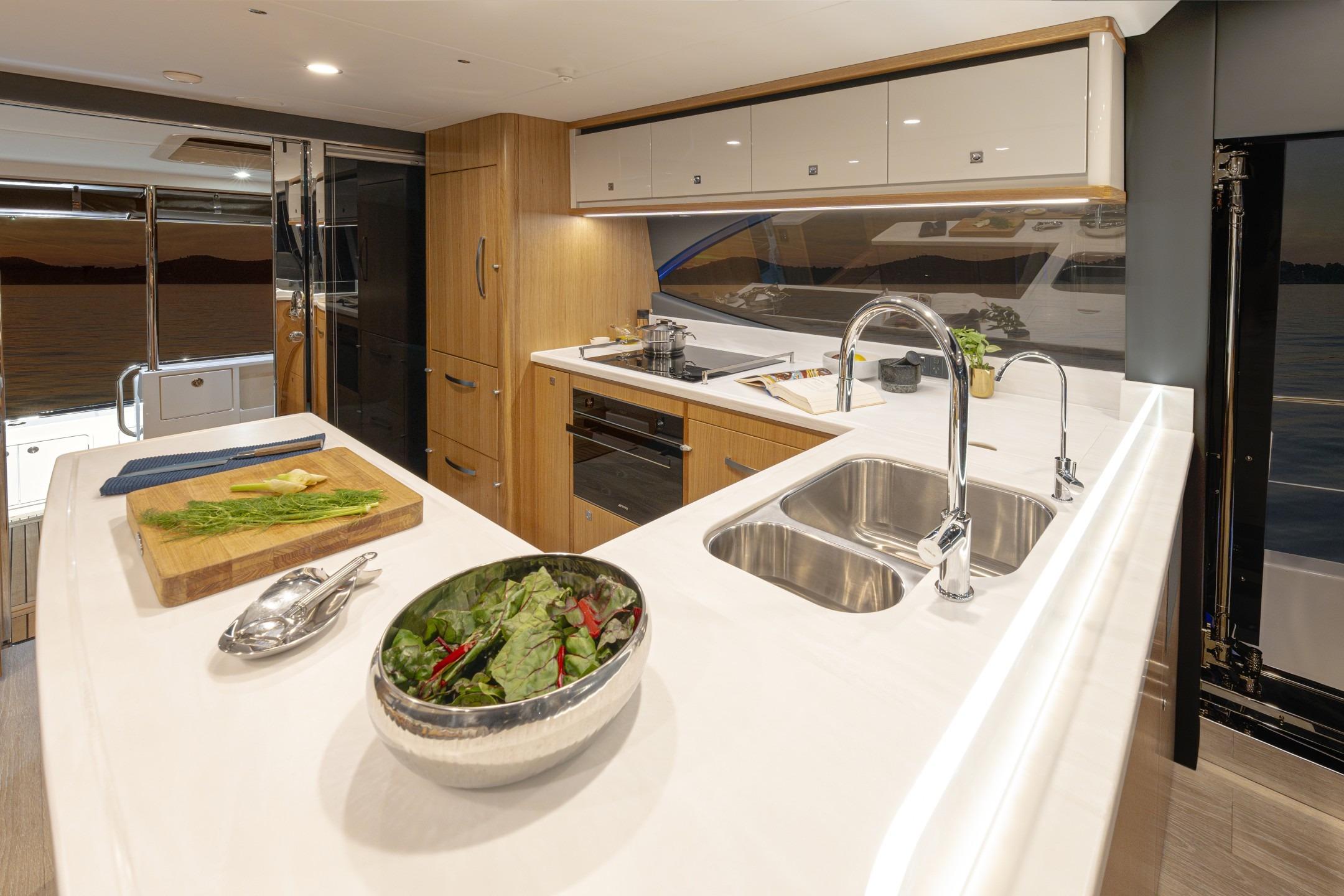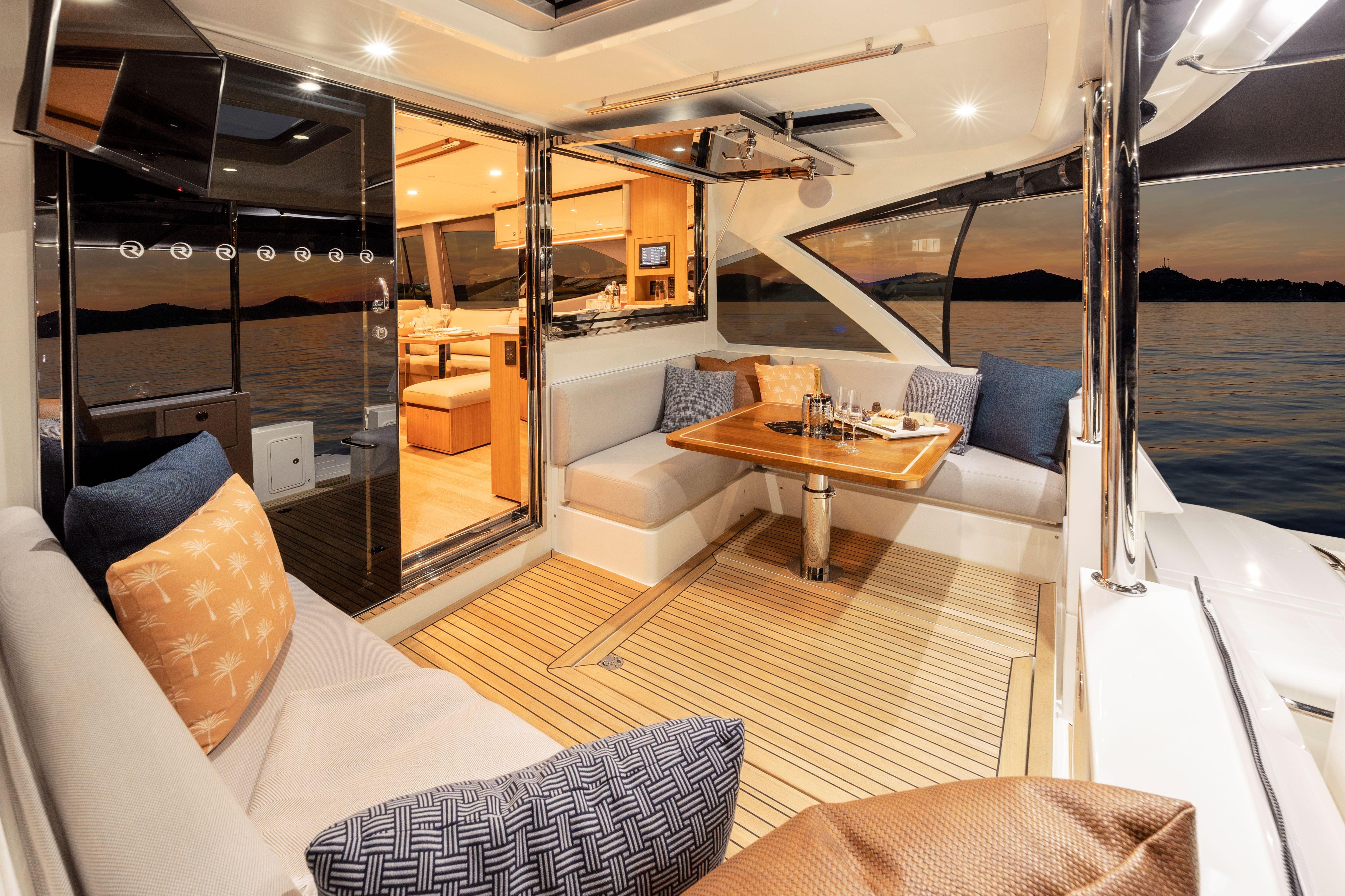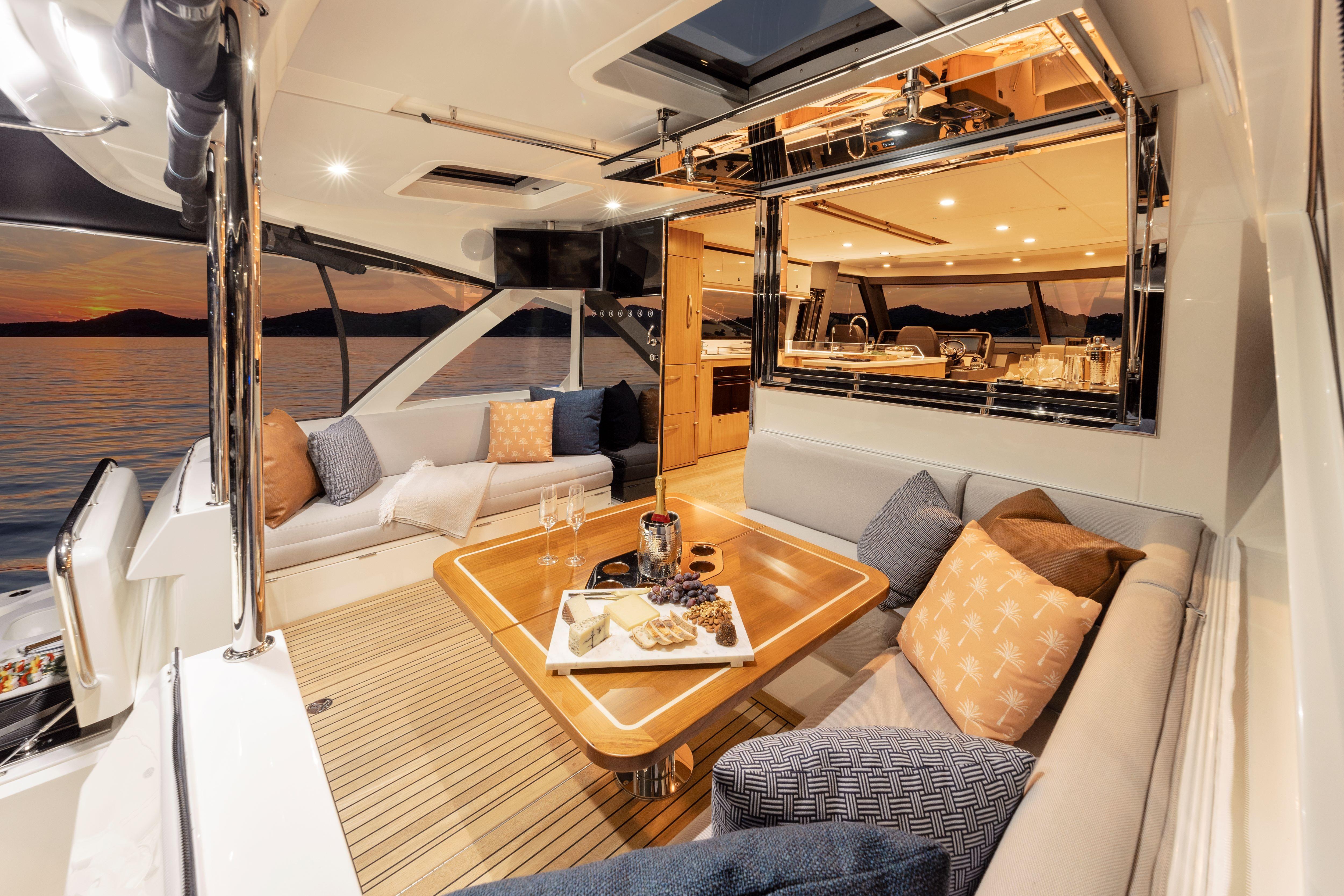 Experience new levels of luxury living, entertaining and relaxing all with that signature SUV spirit of adventure, proven blue water performance and water sports action. Enjoy two superb dining options – on the alfresco deck and in the spacious saloon – as well as a third U-shaped, 8-seat entertaining area on the foredeck.