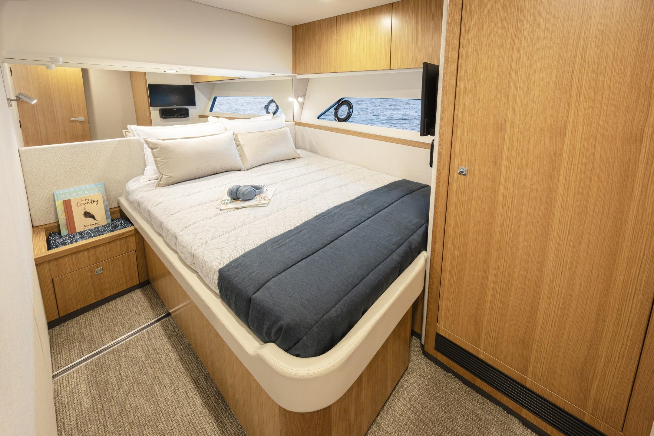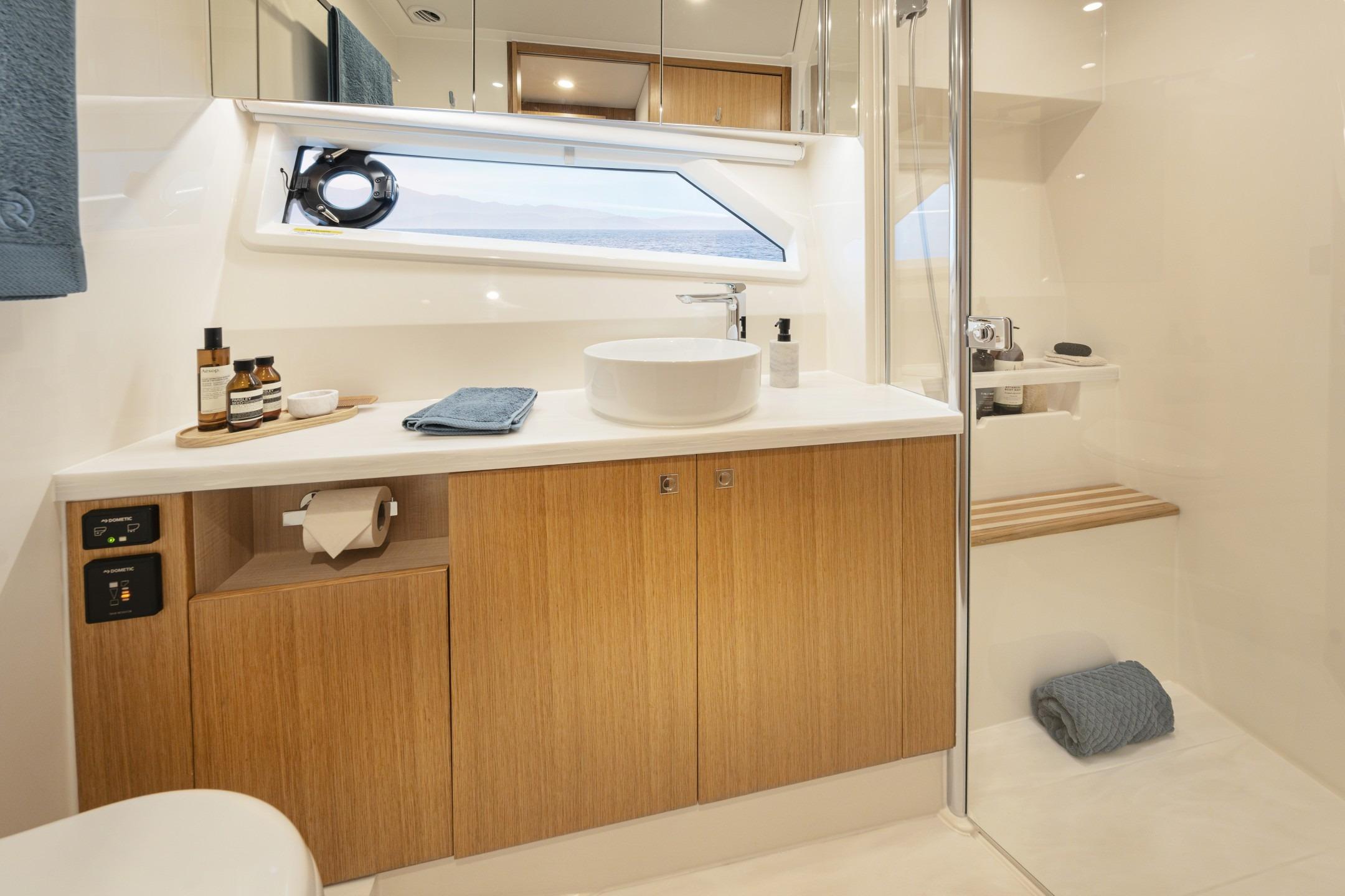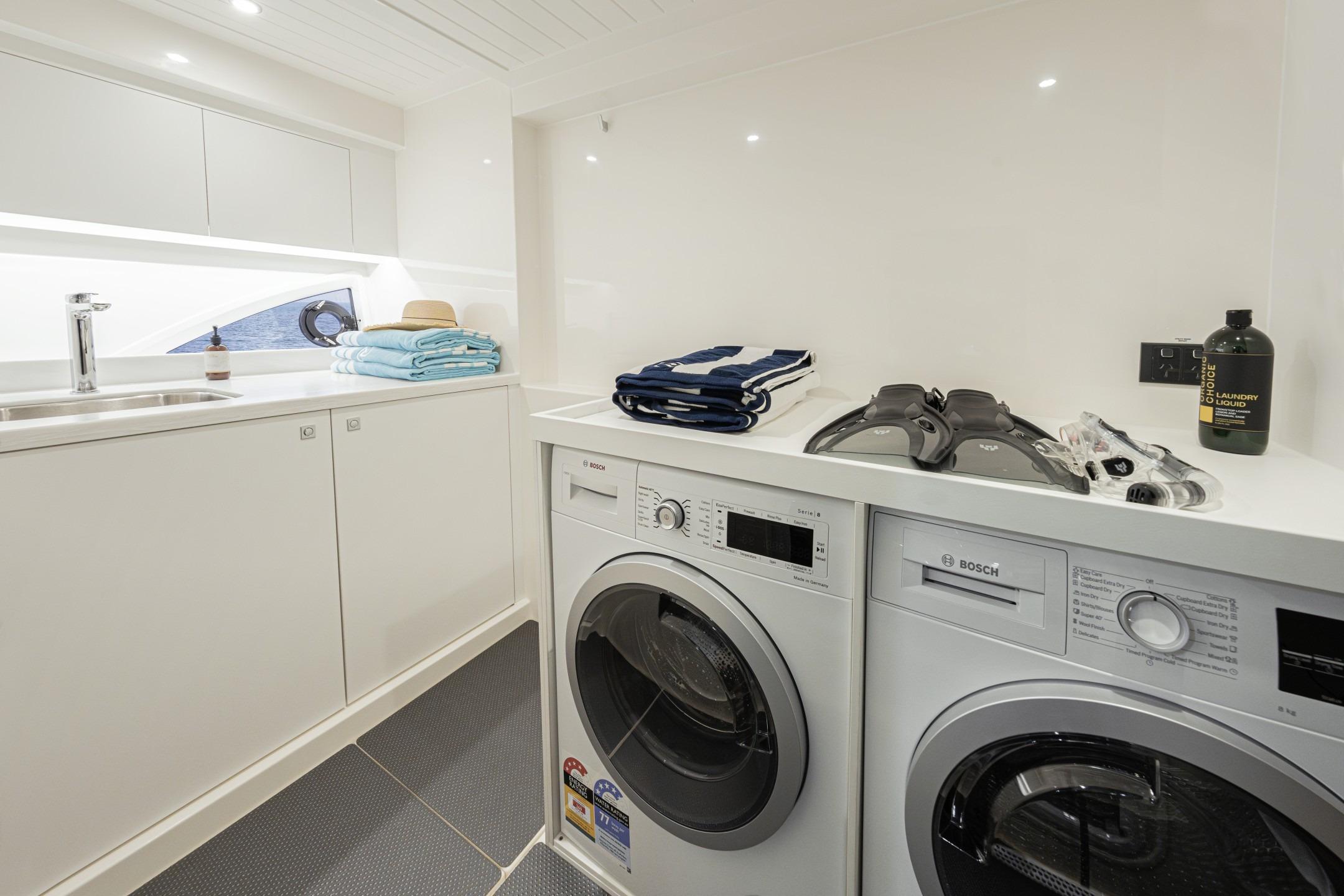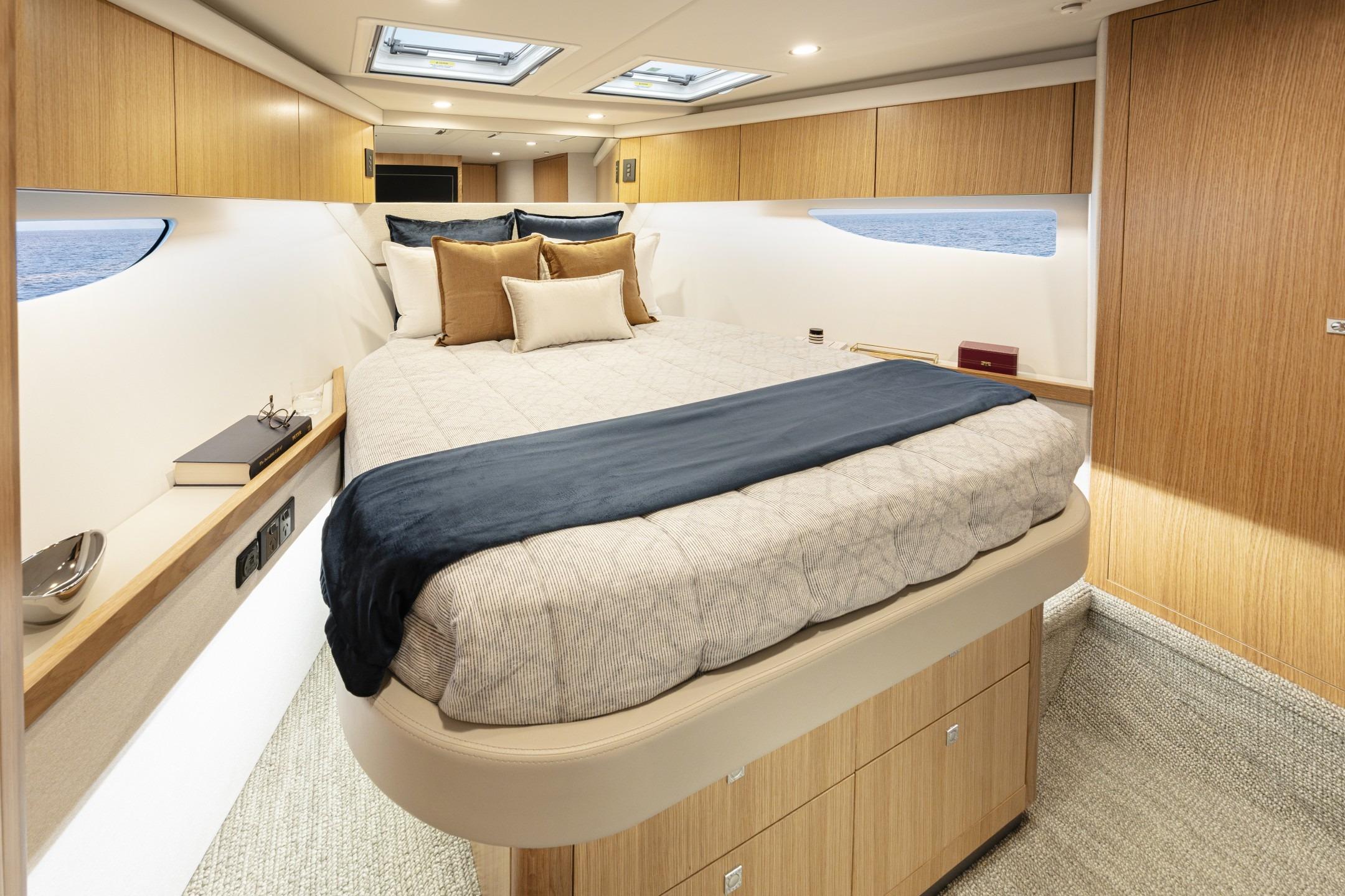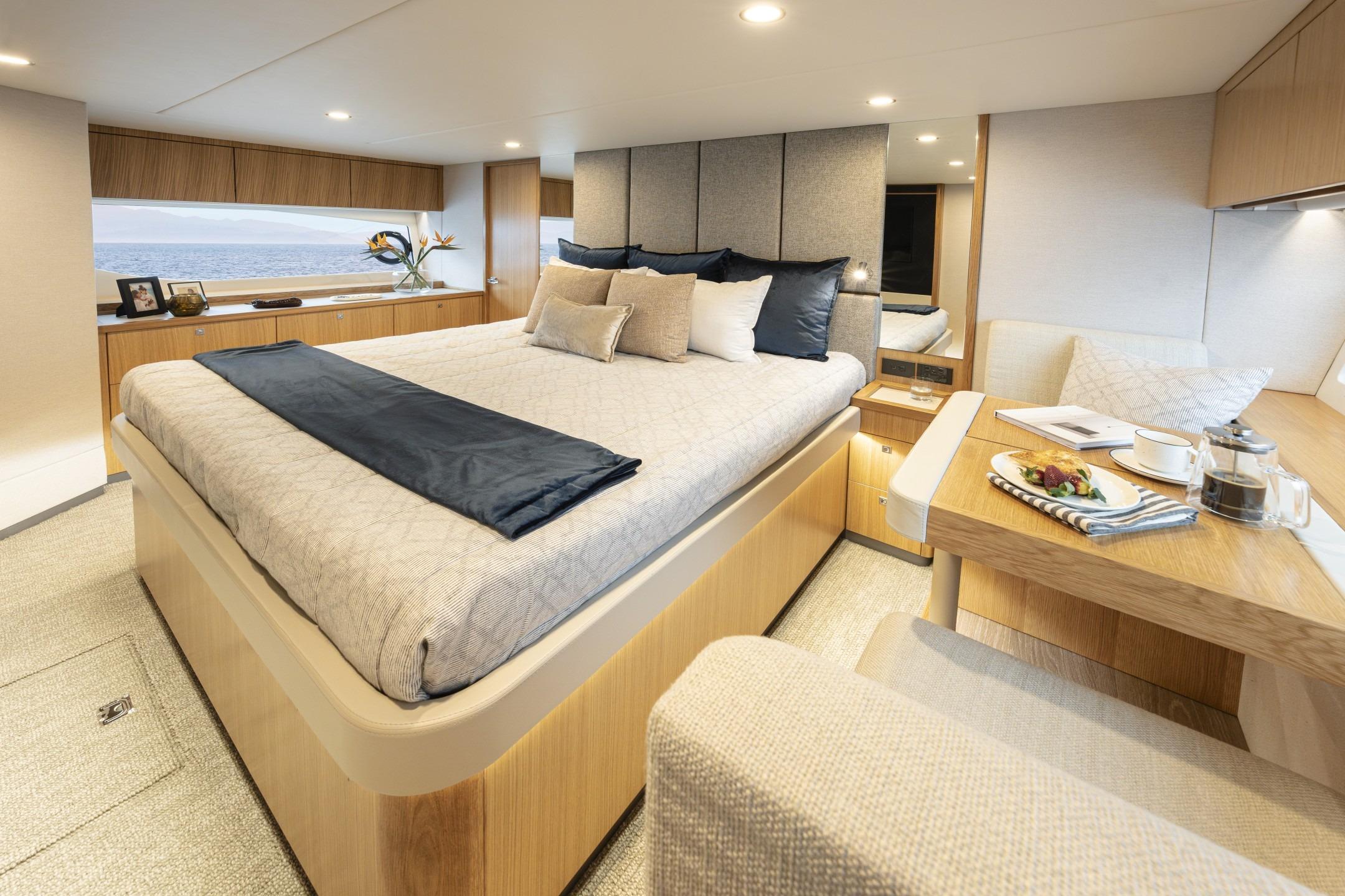Pamper your family and friends with three luxurious staterooms including a full-beam master, three bathrooms and a crew cabin or utility room with dedicated laundry.