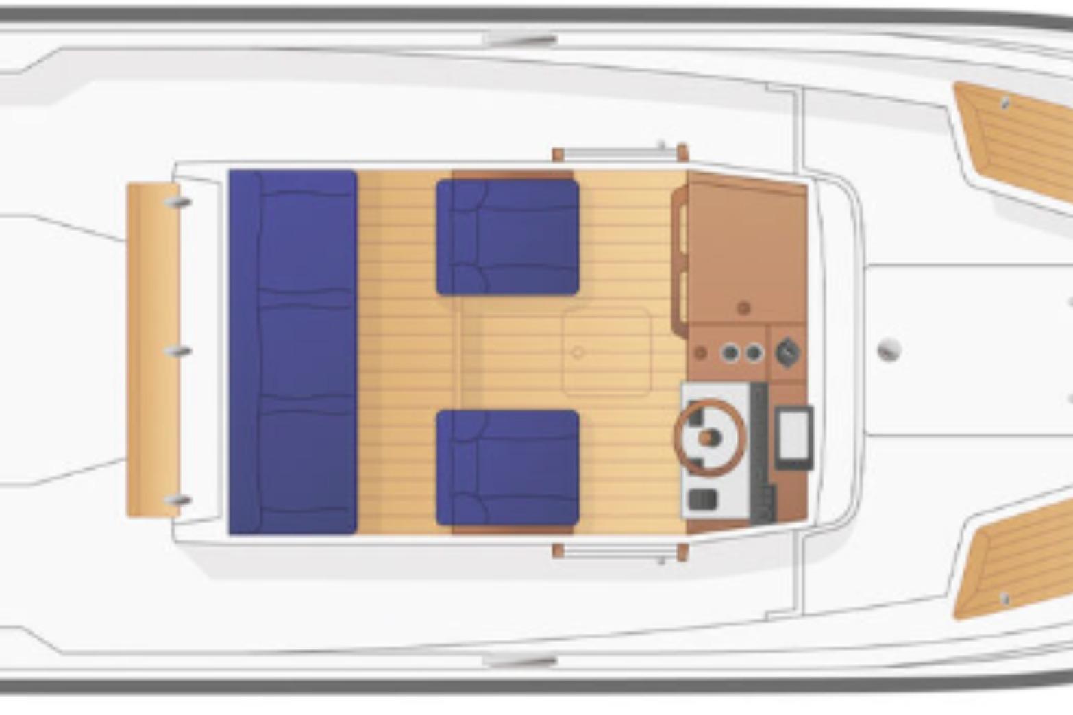 This model is available in a variety of engine options, from 230HP inboard engines, to twin 150HP outboard engines.