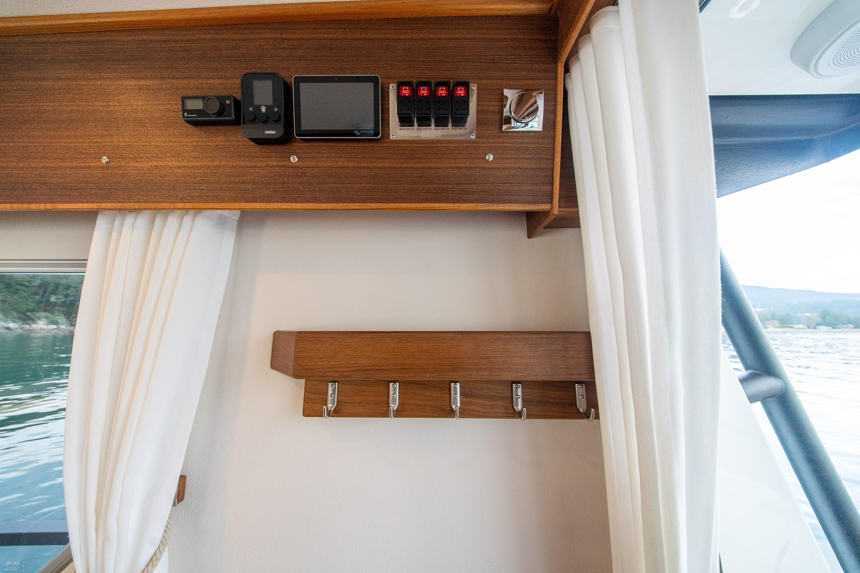Black covers on Berker outlets at helm (110V + 12V + USB)