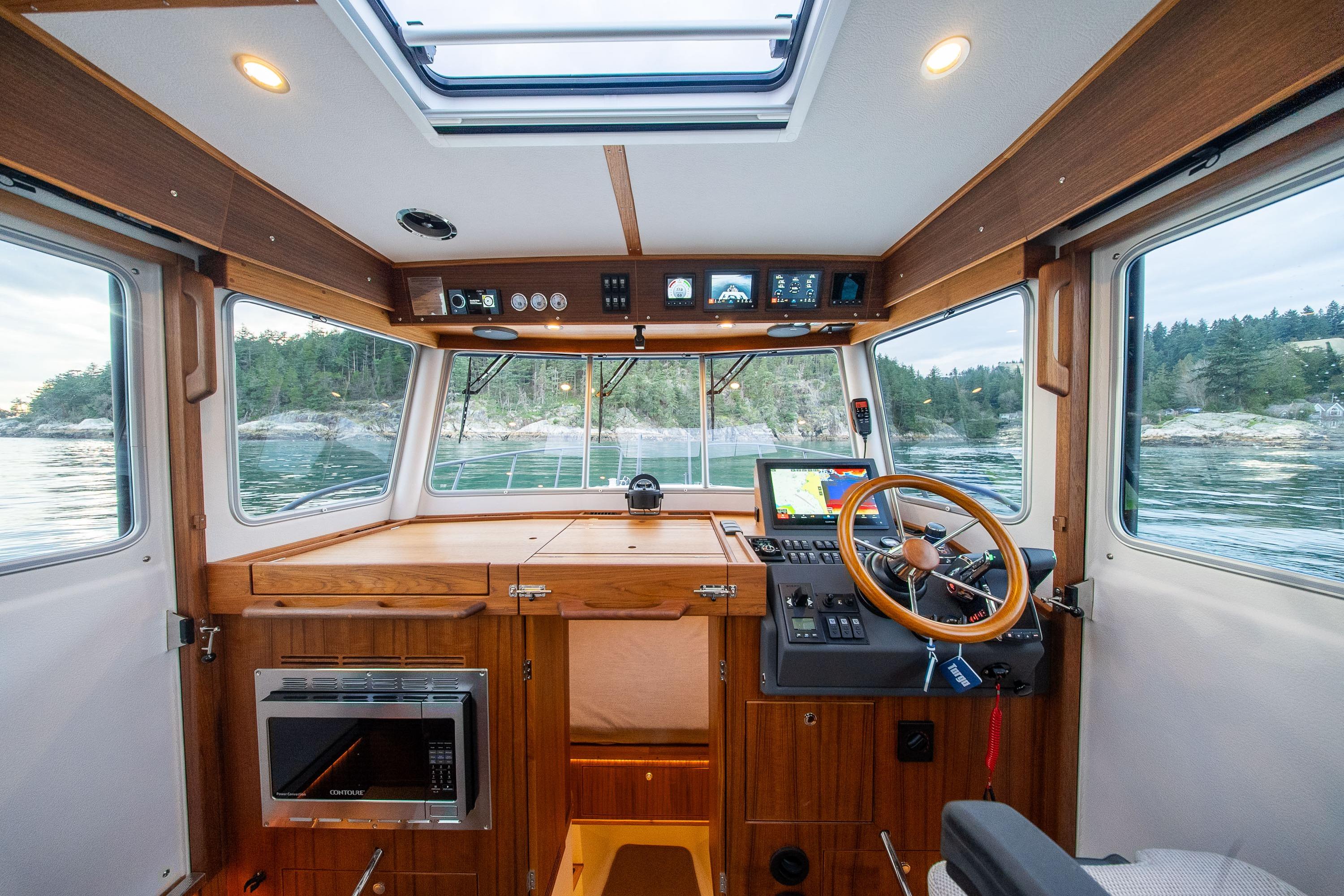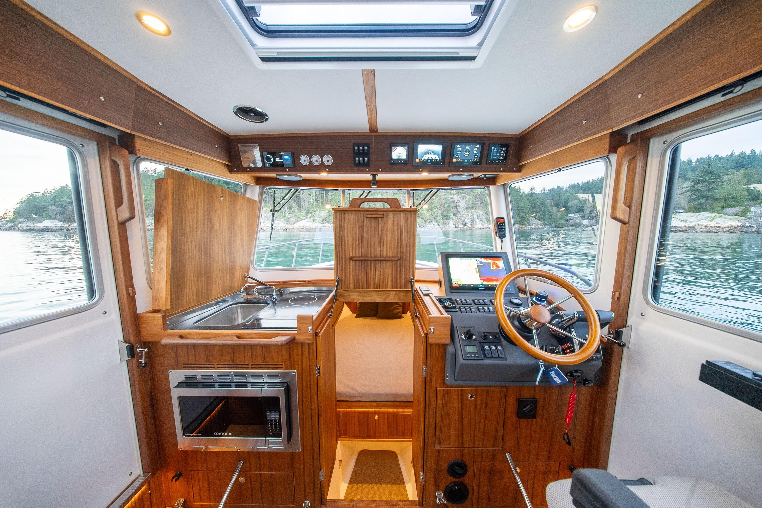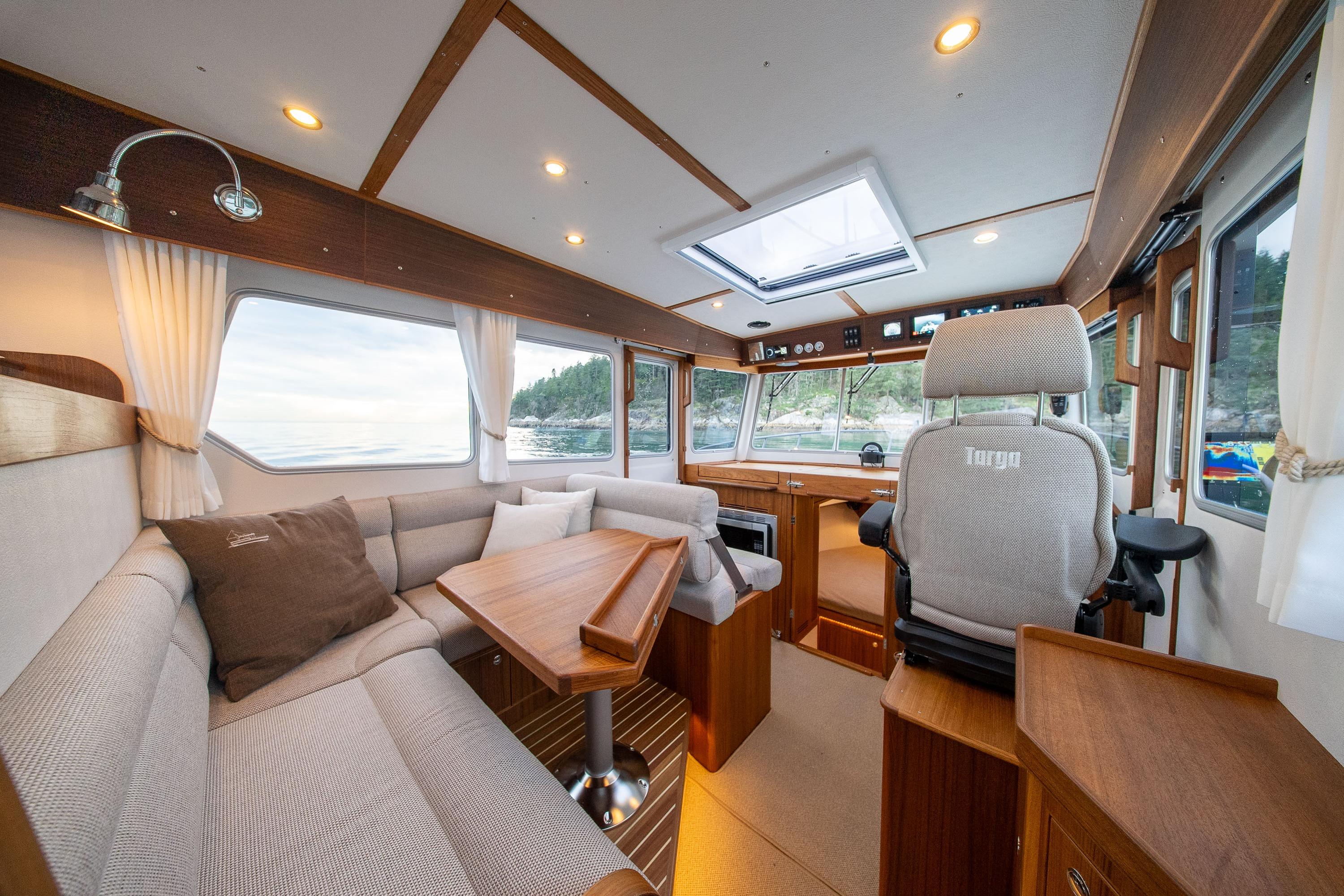 Interior: Pilothouse, aft & fore cabin